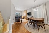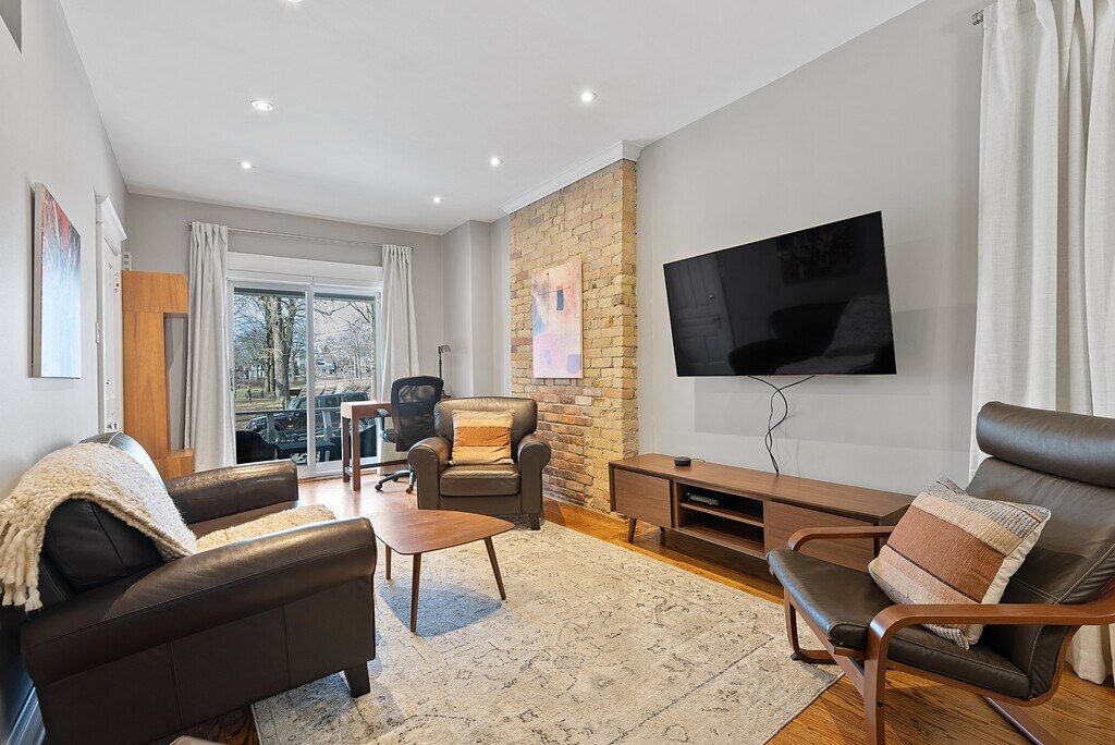 Charming Two-Storey Apartment in The Beaches — 39 Lee Ave Welcome to your new home in the heart of The Beaches! This bright and spacious two-level apartment offers the perfect blend of comfort and character. Featuring two bedrooms and one bathroom, this unit is ideal for small families, professionals, or anyone looking to enjoy one of Toronto's most sought-after neighbourhoods. The open-concept main floor includes a modern kitchen and a cozy living area and a dining area, Enjoy access to the backyard deck from the kitchen, perfect for relaxing or entertaining. Downstairs, you'll find two well-sized bedrooms with plenty of storage space. Enjoy the convenience of one dedicated parking spot, ensuite laundry and fully furnished move-in-ready home with easy access to Queen Street's cafes, shops, and transit, and just a short stroll to the beach and boardwalk.