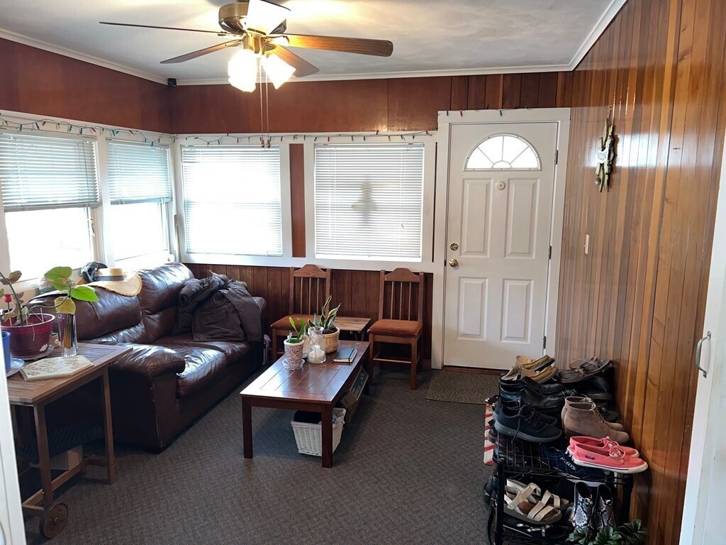 Great opportunity to rent a charming single-family home in the heart of Chelmsford,conveniently located near South Row School,local parks,and the town center. This inviting home offers two spacious bedrooms,one full bath,and one half bath,with an open-concept kitchen and dining area that flows into a generous living room—ideal for everyday living and entertaining. A bright four-season family room/sunroom adds flexible space to relax,work,or gather year-round. The finished basement features two bonus rooms and an additional half bath,perfect for a home office,gym,or playroom. Enjoy the convenience of laundry hookups,ample storage,and central A/C. The attached garage includes a 240V outlet and EV charging station,with additional parking in the large driveway. Step outside to a huge,level yard just under an acre—ideal for outdoor fun—plus a deck off the family room for easy indoor-outdoor living and a backyard shed for extra storage. MLS# 73476100