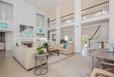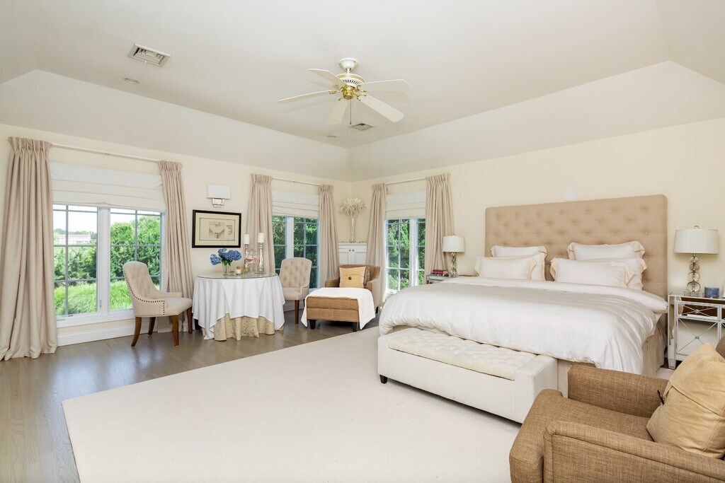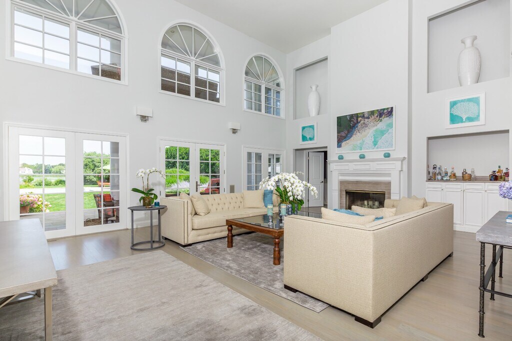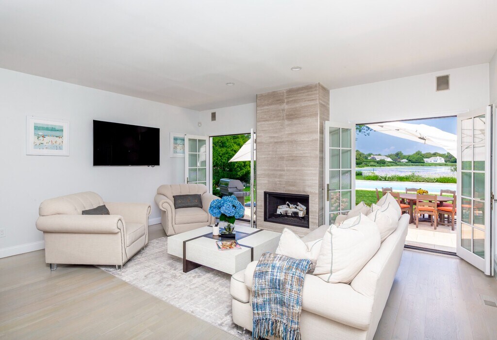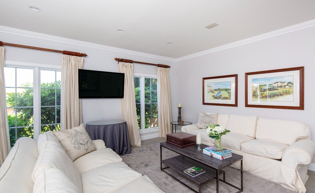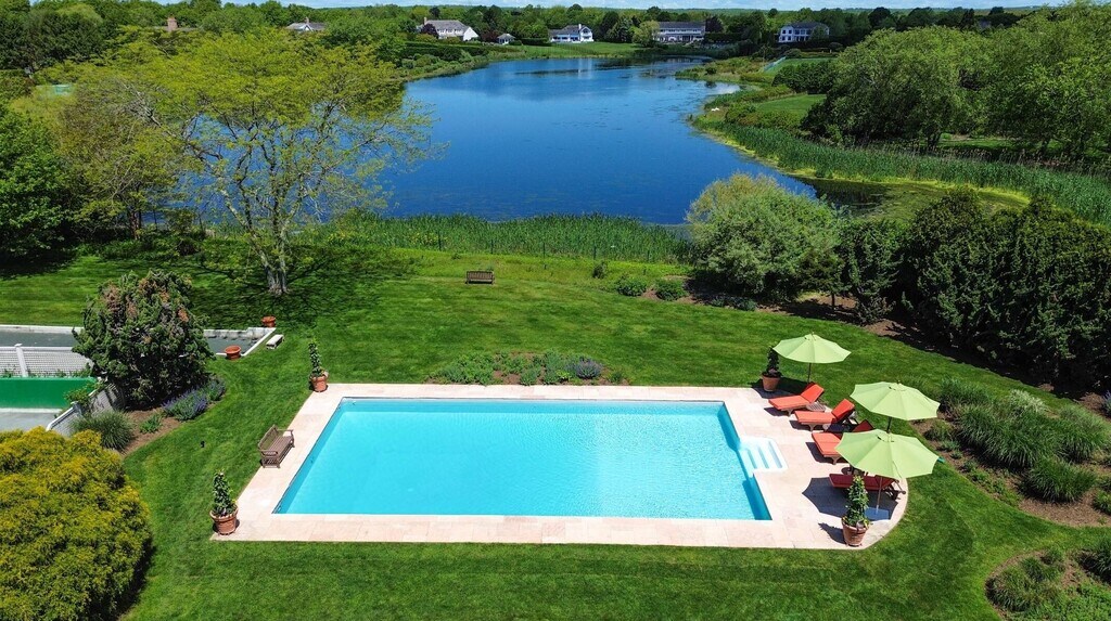 Fully Outfitted by Restoration Hardware, interior renovation includes grey tone hardwood flooring thru-out, brushed nickel hardware on all the new solid wood interior doors for additional sound proofing plus an exceptional 20-x40 all white professional kitchen with sub-zero, double dishwashers, ice maker, wine refrigerator that houses up to 120 bottles, Viking stove with 6 burners, hood & grill & double ovens, built- in microwave plus informal dining room & a spacious family room with triple French Doors opening to the manicured grounds & flower gardens. Large new flat screens thru-out this very spacious & sun filled cheerful home with a 2 story great room and piano room, formal dining room, den, 6 bedrooms, 5.5 bath home including separate staff quarters with a private entrance. Three guest bathrooms have gone under a complete renovation. This south of the highway Southampton Village estate offers something for everyone, sited directly on the water with peaceful views & sunsets, waterside heated pool with very spacious patios and multiple covered decks, sunken har-tru tennis court & bocce ball court. The finished lower level includes a large media room, billiards room and work-out room & staff quarters. By appointment only. Rental Terms: July: $200,000 August - Labor Day: $250,000 August: $250,000