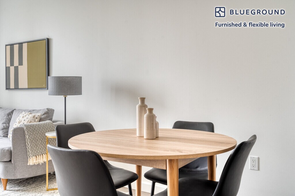 Feel at home wherever you choose to live with Blueground. You’ll love this charming SoMa furnished one bedroom apartment with its modern decor, fully equipped kitchen, and pretty living room. Ideally located, you’re close to all the best that San Francisco has to offer! (ID #SFO781) The advertised rate of $5,450/month is the lowest available price, based on a 12 month(s) stay with a move-in date of April 11, 2026. Rates vary depending on the duration of stay, season, and other parameters. For exact pricing and additional pricing components, please visit our website and enter your desired move-in and move-out dates. The rate is applicable when billed upfront; it can be higher if billed in multiple payments. Brokers are welcome to reach out. Were you looking for an unfurnished lease? Try Blueground instead and upgrade from unfurnished to furnished living: - Furnished at rates comparable to unfurnished - No setup or furniture costs - save thousands - Move-in ready - save time, just bring your suitcase Designed with you in mind Thoughtfully designed with bespoke finishes, modern furnishings, and a fully equipped kitchen, you’ll enjoy that “I’m home” feeling with this Blueground apartment. Whether you’re lounging in your sophisticated living room streaming the latest and greatest entertainment on the smart TV or premium wireless speaker, or getting some well-earned rest on the superior quality mattress with fully stocked linens, you’ll fall in love with everything this SoMa apartment has to offer. This apartment also offers in-apartment laundry. Sleeping arrangements King Bed, 70.8in/180cm Amenities Building amenities unique to this one bedroom apartment include an on-site: - Doorman - Dryer - Elevator - Washing machine - Lounge - Library - Parking - Pets allowed - Rooftop BBQ - Sauna Arrival and ongoing support The entire apartment is yours to enjoy! Throughout your stay, you’ll have access to our Client Experience team through the Blueground App. You can schedule additional cleanings, submit maintenance requests, and view our neighborhood recommendations with just a few taps. We’ll share all details upon confirmation of your stay. Ideally Located This furnished apartment is located in South of Market, known as SoMa. A trendy, urban district, famous for its excellent art and museum scene. Home to a diverse mix of entrepreneurs and young families, this neighborhood offers hip bars, fine dinings and delicious coffee. Don’t miss the plethora of museums, including a visit to the San Francisco Modern Museum of Art. Baseball lovers frequently visit SoMa, as it is also home to the San Francisco Giants. Other things to note Building amenities may have an extra cost. This Blueground apartment has flexible lease options, allowing you to book it for one month, a year, or more. Pets are welcome, though weight limits and breed restrictions apply and may incur fees. We take great pride in ensuring every photo displayed is shot in our own units with our actual furnishings. That said, we regularly refresh our decor and furniture arrangement, which may differ from what’s pictured. [SI]