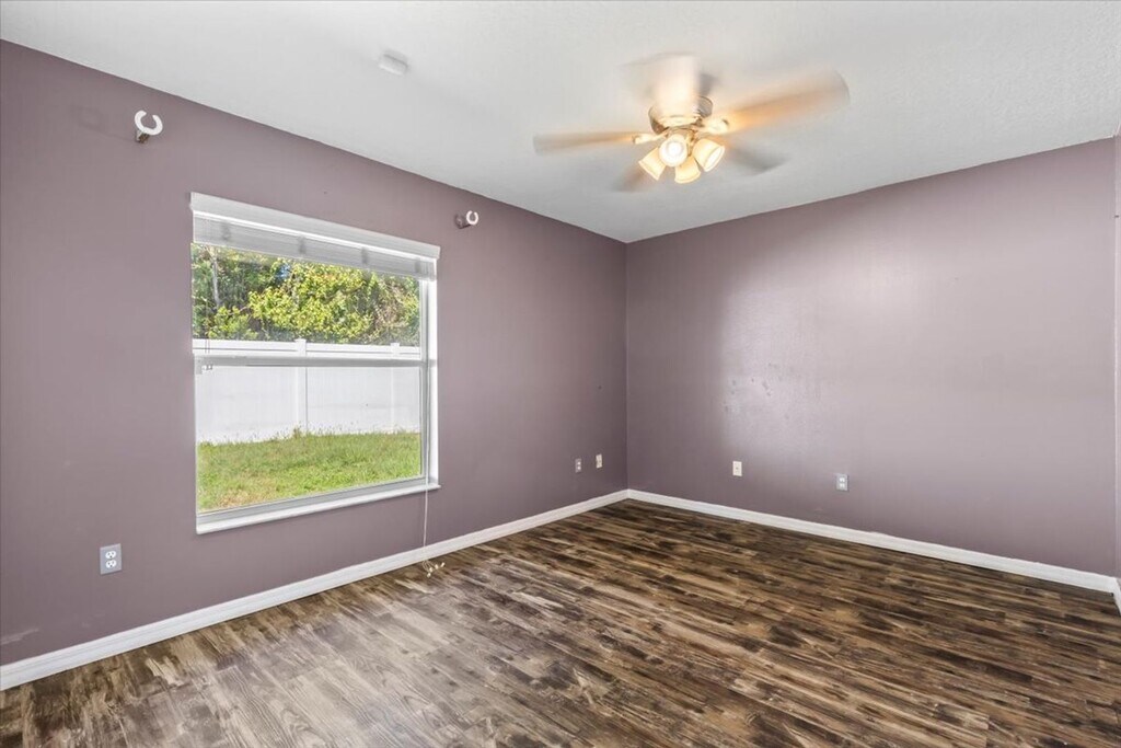 This spacious, 3 bedroom, 2 bathroom home offers over 1,800 square feet of well-designed living space with a desirable split-bedroom floor plan. Inside, you'll find fresh interior paint, durable luxury vinyl flooring throughout (no carpet!), and vaulted ceilings that create an open, airy feel. The kitchen features stainless steel appliances, crisp white cabinetry, and plenty of storage. A versatile formal dining room could easily double as a home office, den, or playroom to suit your needs. The spacious primary suite includes a walk-in closet, tray ceilings, and access to your private back porch, while the secondary bedrooms provide comfortable space for family or guests. Step outside to a 36-foot screened-in patio overlooking your fully fenced yard, complete with a newer white vinyl fence for privacy and peace of mind. Located in a desirable section of Palm Coast, you'll enjoy quick access to I-95, US-1, shopping, dining, and beautiful area beaches plus an easy commute to both Daytona Beach and St. Augustine. *Pets Ok! Restrictions apply. *Renters Insurance Required Office, After hours, Becky