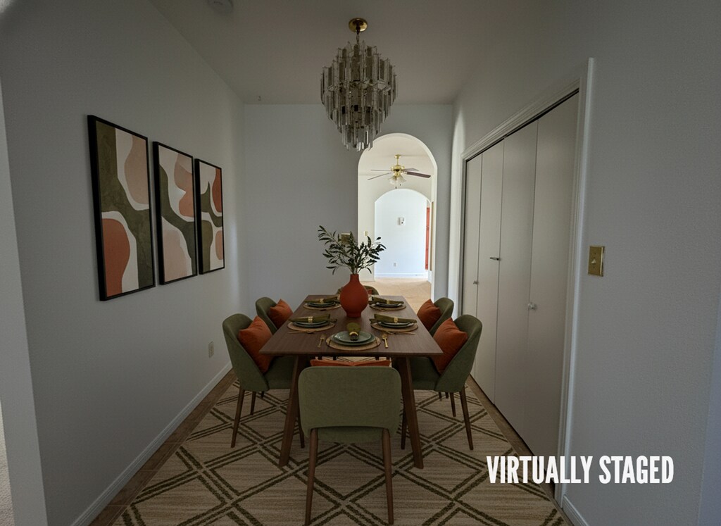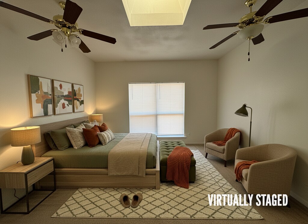 View 360 Virtual Tour: Beautiful country home! 3 bedrooms, 2.5 bathrooms, 1,919 square feet, and about .62 acres of living the country life! This home has so much to offer! A huge living room right off the kitchen and formal dining room. The master features a skylight and two ceiling fans, a master bath, garden tub, large walk-in shower, and his and her sinks as well as closets. Two minor rooms just down the hall are larger than the typical bedroom. Skylights are located throughout the home, bringing in a lot of natural light! Disclaimer: The furnishings or enhancements shown are AI-generated and intended for inspiration only. They may not reflect the actual scale, condition, or current features of the property.
