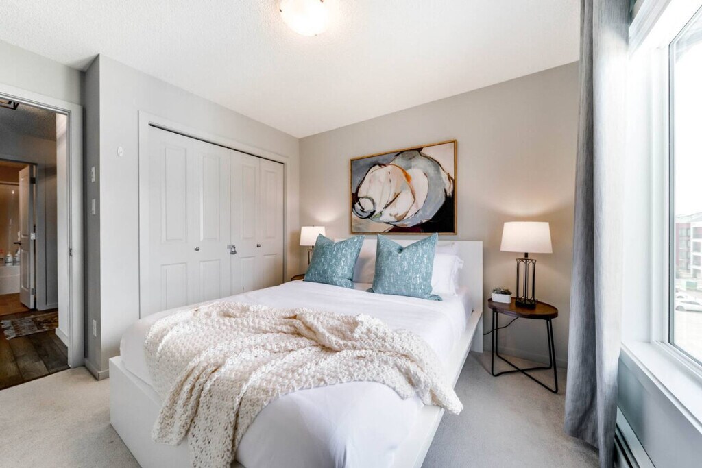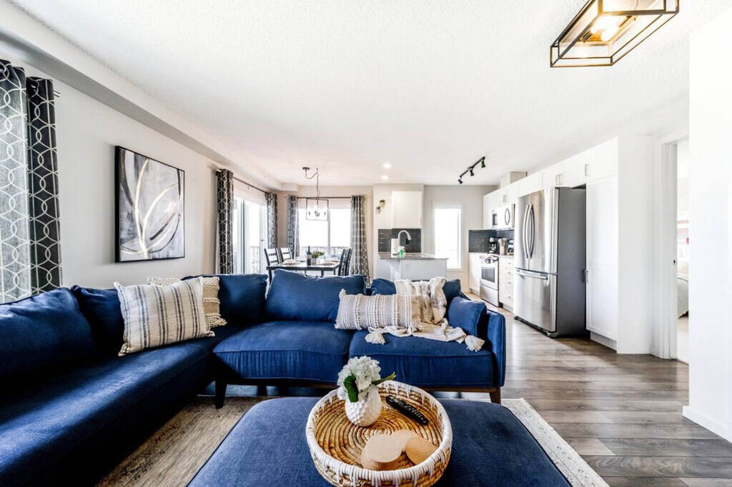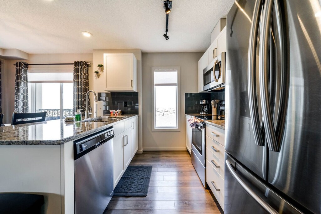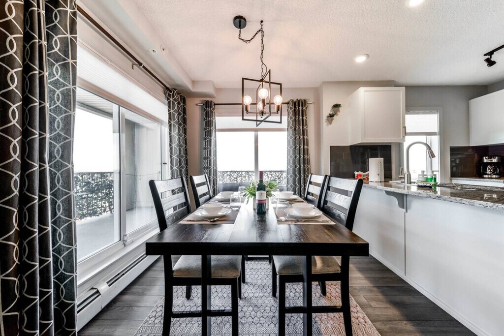 Welcome to our Soho-inspired Windermere condo, a stylish 2-bedroom, 2-bathroom retreat. Located in a 4-story building, this condo offers easy access to grocery stores, shopping centers, upscale restaurants, Terwillegar Park, and a recreation center. With 900 sqft of space and a balcony, you'll feel at home in this beautifully decorated space. This condo is tailored for both business travelers and families, featuring a fully equipped kitchen with new appliances, in-suite laundry, and a spacious living room. Relax on the couch, enjoy fast WiFi and Roku on the 55" TV, or set up your workstation at the big dining table. The condo is professionally cleaned and sanitized between guests, ensuring a comfortable stay. The condo includes a heated underground parking stall and offers plenty of free guest parking. Early check-in or late check-out is available for a fee of $25 each or $40 for both, with prior approval. Located in the vibrant Windermere area of southwest Edmonton, this condo is surrounded by beautiful lakes, parks, and walking trails. Enjoy easy access to Windermere Lake, the golf and country club, and a range of recreational and cultural attractions. A short drive takes you to West Edmonton Mall, Terwillegar Park, downtown, and the University of Alberta. Quiet hours are between 10 PM and 8 AM to respect neighbors. No pets are allowed, and this is a non-party home. A $250 fee will be charged if the property smells of smoke or if evidence of smoking is found. Tampering with fire alarms or smoke detectors will incur a minimum $100 fee. The maximum occupancy is 6 people, and any unregistered guests will be charged a $40 fee per person per night. Late check-out incurs a $50 fee if not vacated 30 minutes after 11 AM, and additional cleaning fees may apply if the house is left messy. The condo is remote work-friendly, allowing you to set up your workstation at the dining table. Fast WiFi ensures you stay connected, and a laptop computer is not included. Registration Number: 441736615-002 [SI]