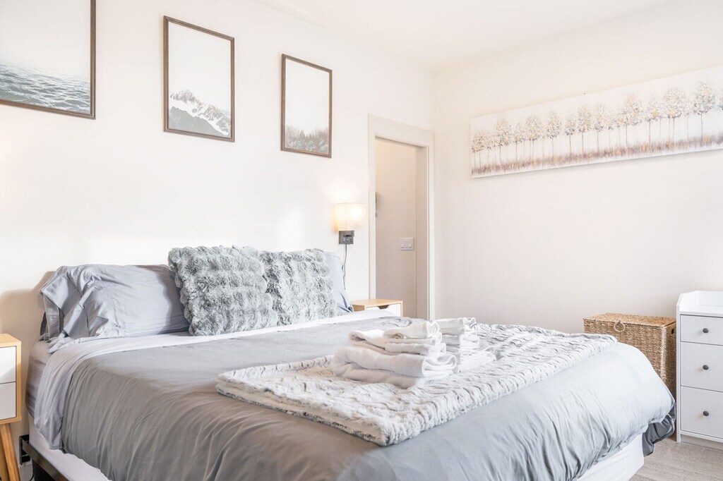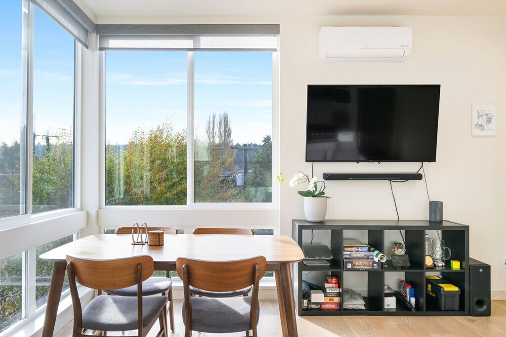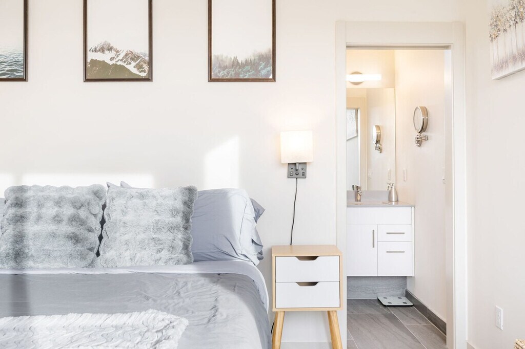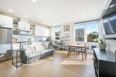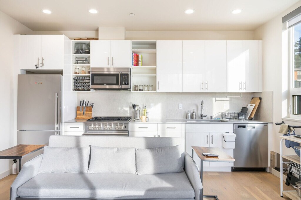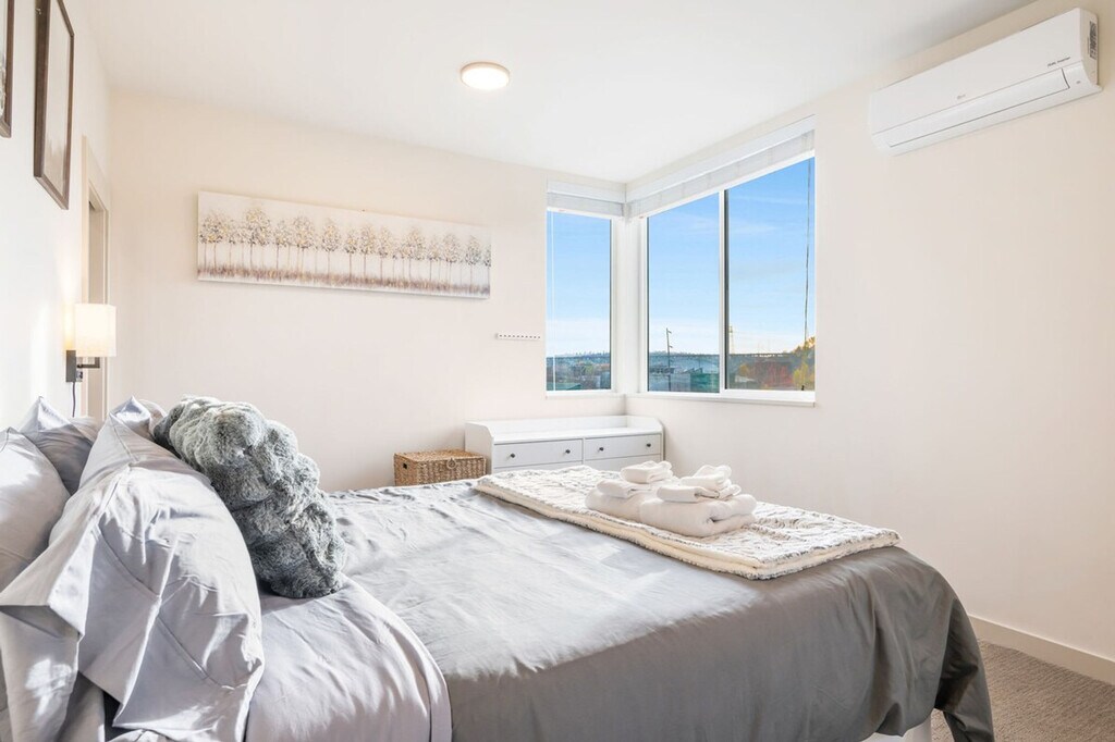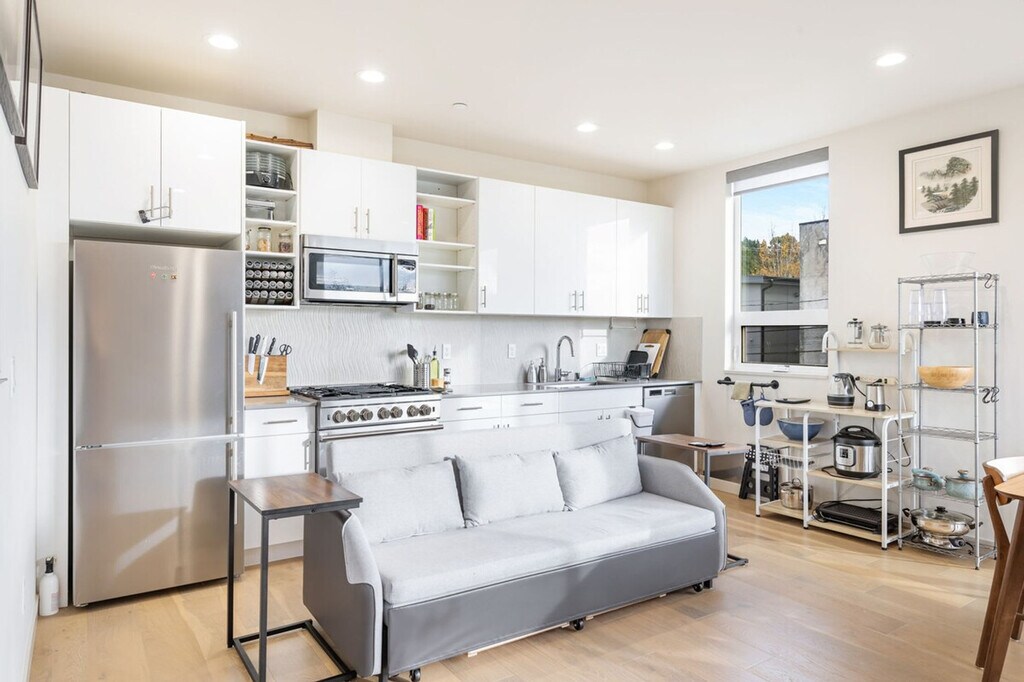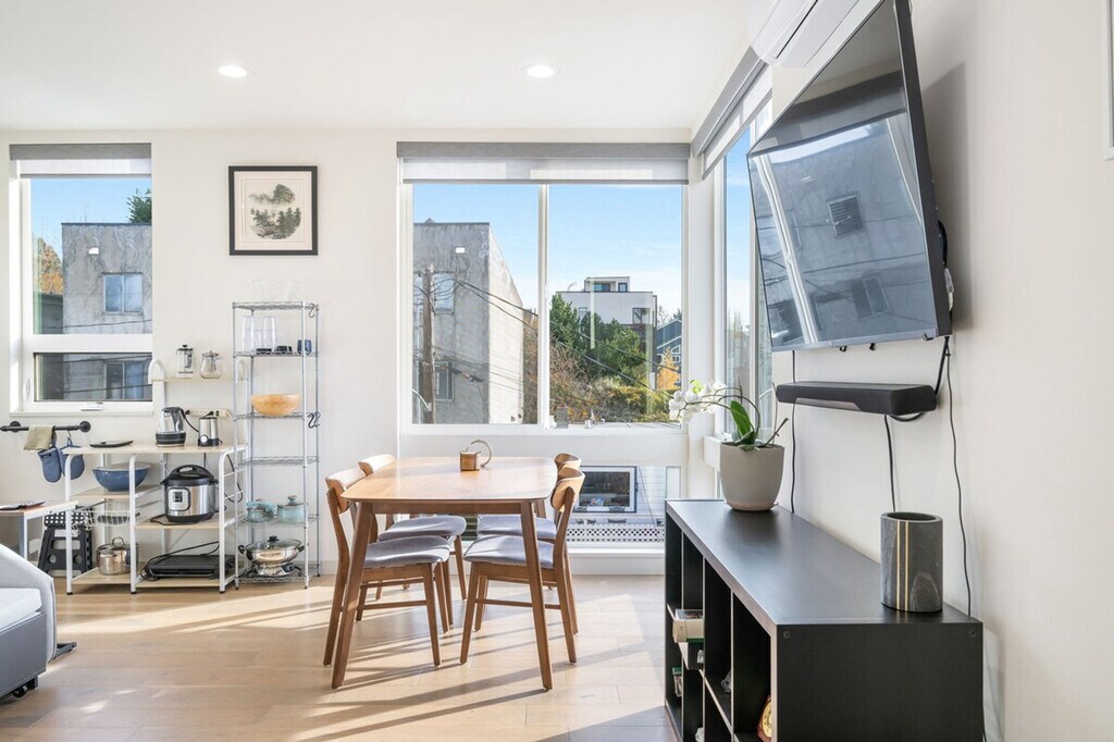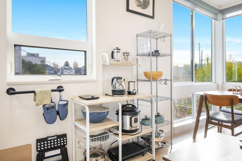 Travelers' haven in Seattle, this 5-story townhome offers a seamless blend of comfort and style. With no steps at the entrance, the home features 2 bedrooms and 2 bathrooms spread across approximately 1000 sqft. Enjoy the private rooftop with a fire pit and stunning city views, making it easy to feel at home. Great for travelers, the apartment includes a fully stocked kitchen and a home office with a proper desk and monitors. The primary bedroom boasts a Cali King bed, while the living room features a king-size pull-out bed and a smart TV. The rooftop patio offers outdoor seating, a fire pit, and a hammock, perfect for taking in breathtaking views of the city, South Lake Union, the Canal, and the mountains. The regular nightly rate covers 4 guests, with additional guest fees at $25 per person per night, up to a maximum of 6 guests. Well-trained pets are welcome with a fee of $50 per night, and parking is free on the street with no time limit on one side and a two-hour limit on the other. Welcome to the Fremont neighborhood of Seattle, where indie shops and hip bars pack this bohemian area on the north bank of the canal. Discover quirky outdoor sculptures like the Fremont Troll and the towering Fremont Rocket. The neighborhood is home to arty residents and tech workers who frequent eclectic eateries. The Fremont Sunday Market offers art, antiques, and food trucks, while cyclists and walkers explore the canalside Burke-Gilman Trail. With a high walk score, many dining, shopping, and entertainment options are within walking distance. The bus stops are less than a 5-minute walk away, and ride-share services are highly recommended. There is ongoing construction noise from across the street, which may cause some disturbance during your stay. The townhome is not handicap friendly, and guests must be comfortable with stairs as there are multiple stories. Parking is not dedicated, but free street parking is available. Strictly no parties or events, quiet hours are between 10 pm and 8 am, and no smoking or vaping is allowed on the property. A $500 fine applies per violation. Includes a dedicated desk with a monitor and office chair, along with fast internet, making it ideal for remote work. Registration Number: STR-OPLI-19-001363