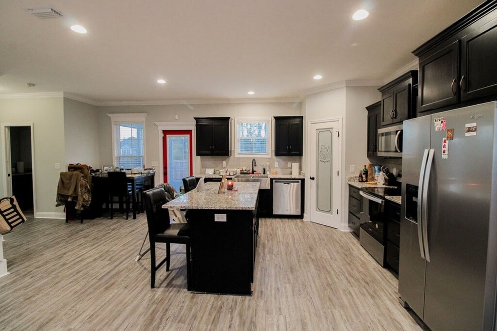 This beautiful 2-story home is in Val-Del Villas Subdivision in Hahira. It has an open floor plan. The kitchen has a large island bar, stainless appliances, granite countertops, custom cabinets, and a pantry. A half bath is downstairs for guests. The laundry room includes a washer and dryer, has ample room and a shelf for your cleaning products. All four bedrooms are upstairs, along with a study/sitting area at the top of the landing. The primary bedroom has a private bath with a stand-alone shower, a dual vanity, and a large walk-in closet. The three additional bedrooms share a bathroom. The back yard has a privacy fence and has a large screened in porch. The home also has a two-car garage.