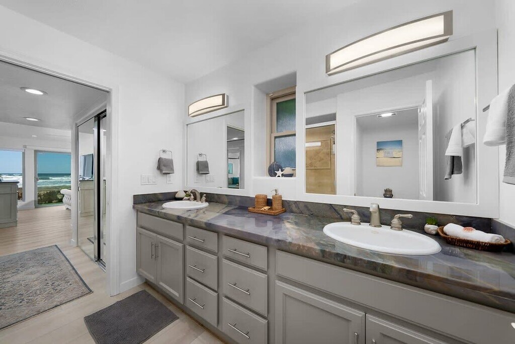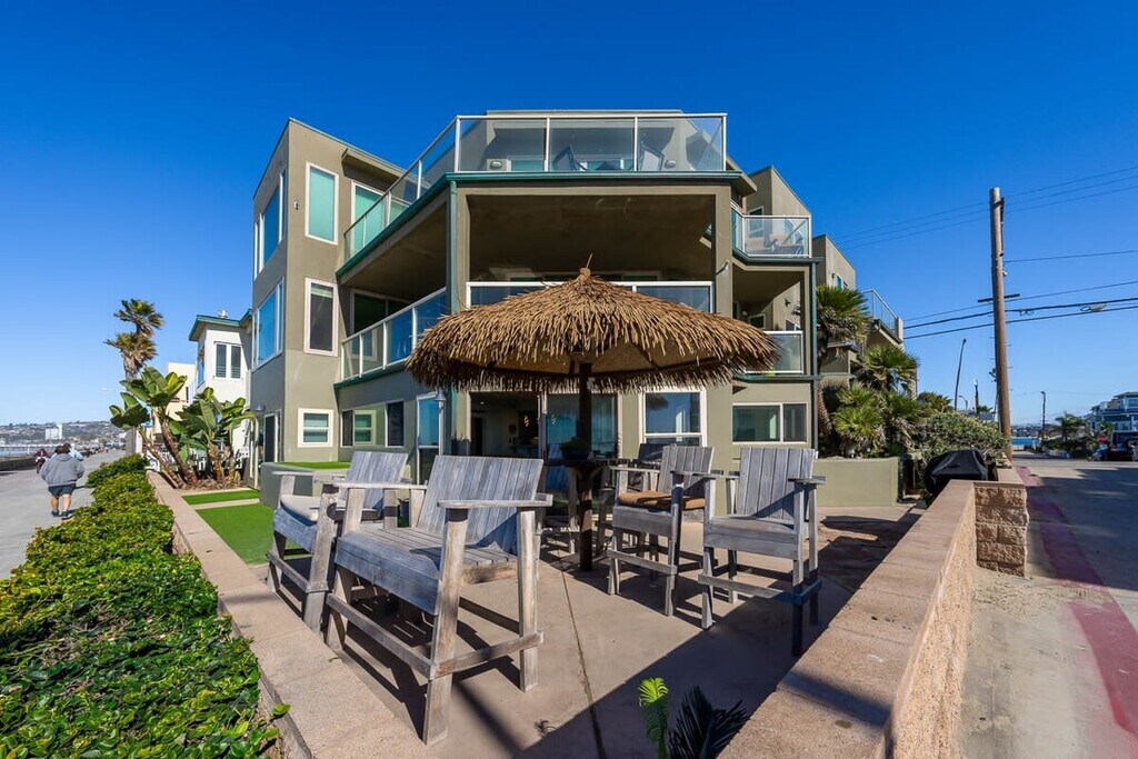 Escape to North Mission Beach's ultimate beachfront retreat! Enjoy the best oceanfront patio with new lifeguard chairs for panoramic Pacific Ocean views. This single-story haven offers 3 bedrooms with ocean views, all on ground level (no stairs), and over 50 feet of oceanfront frontage. A 2 car garage and washer & dryer add convenience. Stroll south to Belmont Park or head north to explore Pacific Beach's delightful restaurants. Create ever lasting memories, book your stay today.