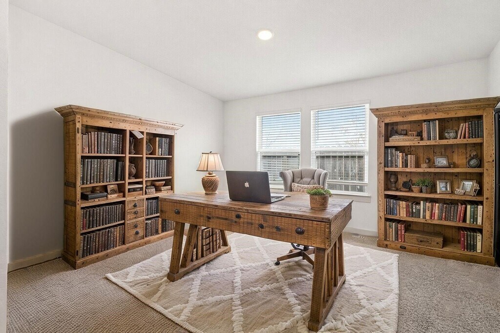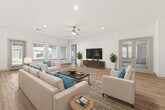 This beautiful single-story home features 5 bedrooms,3 bathrooms,and a private study in a spacious,well-designed layout. The foyer entry leads to three secondary bedrooms and a full bath,while the open-concept dining,family room,and kitchen create an ideal space for entertaining. The kitchen offers a large island open to the family room,quartz countertops,dark cabinetry,stainless steel appliances,and an impressive refrigerator. The light-filled family room overlooks a covered patio with spectacular lake views and no back neighbors. A secondary bedroom with its own bath is perfect for guests,and the study features a striking glass door. The primary suite includes an oversized shower in the ensuite bath. Porcelain tile flooring and luxury finishes complete the home,with community amenities including parks,trails,pickleball courts,splash pad,fitness center,soccer fields,lakes,and a pool. MLS# 83324142