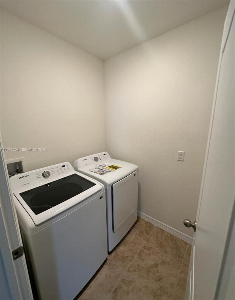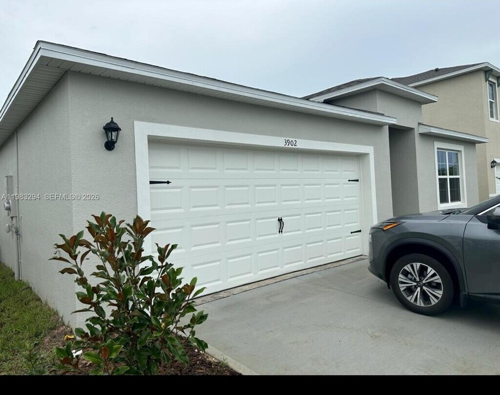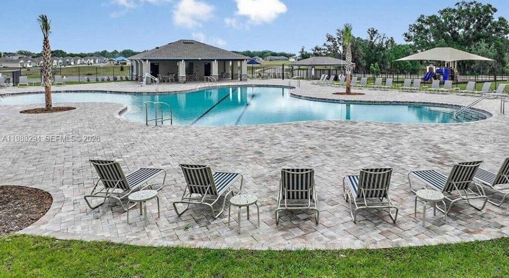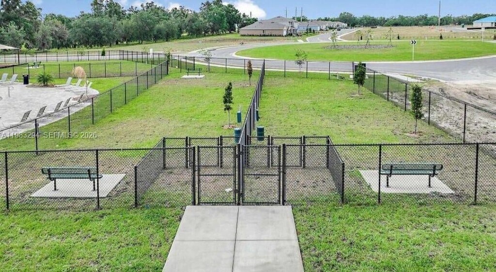 Spacious 4-bedroom, 2-bath single-family home located in a quiet, family-friendly community in Bartow, just 10 minutes from Lakeland. Property features a large fenced backyard with extended concrete patio, perfect for outdoor entertaining, and a 2-car garage. The primary suite offers two closets for ample storage. Home is equipped with a Samsung smart refrigerator with digital screen and Alexa integration, Samsung washer and dryer (like new), glass-top range, and dishwasher. Security system installed with door alarms and exterior cameras. Community amenities include a pool, dog park, and playground. MLS # A11983294