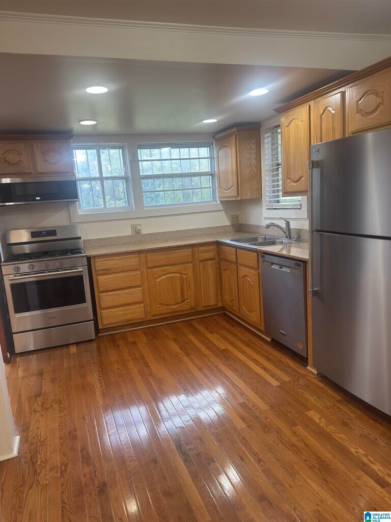 Lovely older home on the Historical Register! Filled with charm & now available for rent! Extremely convenient to down-town, UAB, St Vincent & a large assortment of restaurants. Lg yard & fully fenced New furnace and air conditioning New wiring & lighting throughout house & basement New concrete basement & drive with work shop, all LED lighting Newly painted ceilings, walls, baseboards & doors throughout All new stainless appliances, gas stove Newly refinished hardwood floors throughout, New blinds Hardwood cabinets and granite counter-tops Deep Farm stainless sink, pantry, stackable washer & dryer in kitchen Full size Washer/dryer space in basement Wired for cable & Wi-Fi Tiled walls in tub/shower with new faucets & glass shower doors High capacity toilet, exhaust fan & safety bars Ceiling fans & closets in all bedrooms Walk-in closet in primary bedroom Huge living room with ceiling fan Great front porch comes furnished with swing and fan Furnished back deck with umbrella