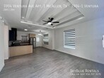 AVAILABLE NOW! Ready to MOVE IN! Apply NOW or schedule a showing here ---> - EL DORADO AT THOUSAND OAKS SUBDIVISION- Located McAllen, Texas! A must see unit with an open layout, modern flooring, Granite Countertops, modern lighting fixtures including recessed lighting throughout the unit, modern sleek two-toned cabinets. Vaulted ceilings with a fan in Living room and bedrooms. All bedrooms come with double chrome closet rods, master bathroom has a glass walk-in shower and custom built-in drawers. Located N Ware Rd and Verde Ave. Continue to N 39th St Appliances & Features: Stainless Steel Appliances Full size Washer and Dryer Assigned Carports WATER and Trash Included-additional $60dlls monthly fee Electricity NOT included Pet Friendly MLS #: 466228 SKU77500150*1 Lease Term: 12 mo. lease. Apply Now or Call/Text to schedule a showing. Year Built: 2024 Rental Assistance: No Fifty-five plus: No Multiplex: No