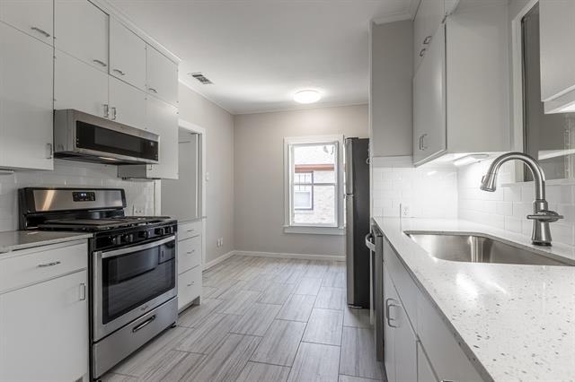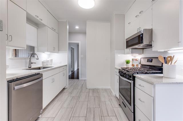 Fabulous remodeled upper-level duplex in the heart of North Oak Lawn—just a short walk to Whole Foods! This light-filled 3-bedroom home blends modern updates with vintage charm, featuring stunning hardwood floors, a showstopping sunroom with walls of windows and built-in storage, and an oversized living and dining areas perfect for entertaining. The sleek kitchen includes quartz countertops, new cabinetry, stainless gas range and refrigerator, and a stackable washer & dryer. Enjoy a spacious primary suite with double closets, plus two additional large bedrooms and excellent storage throughout. Two covered parking spaces included. Professionally managed and impeccably maintained.