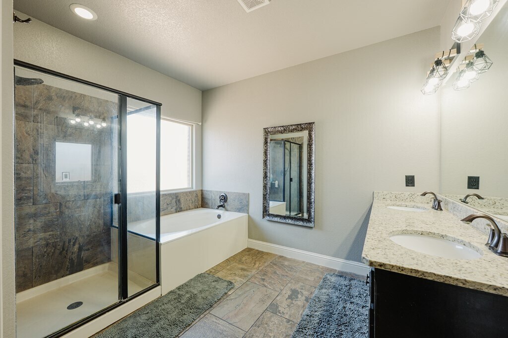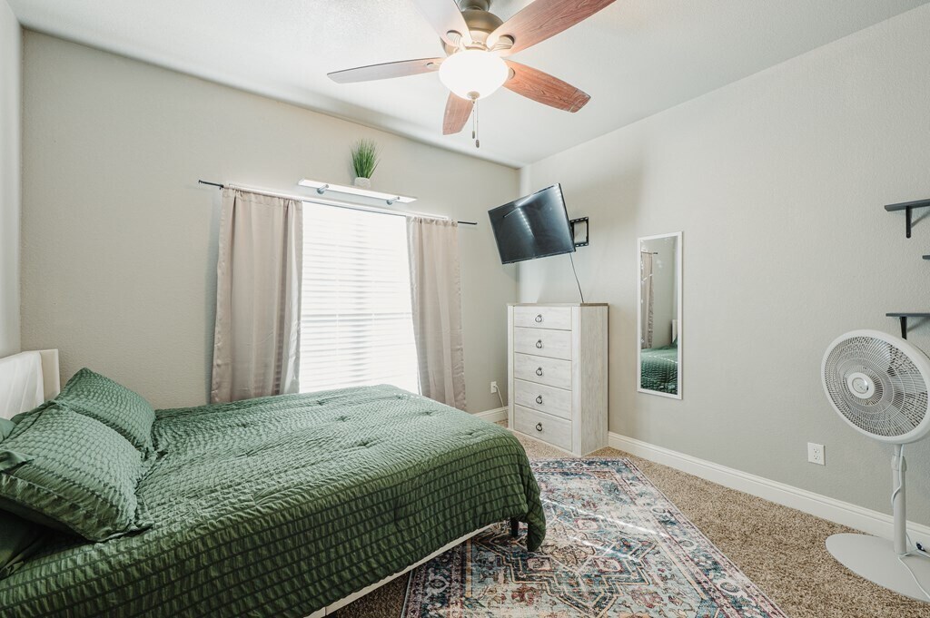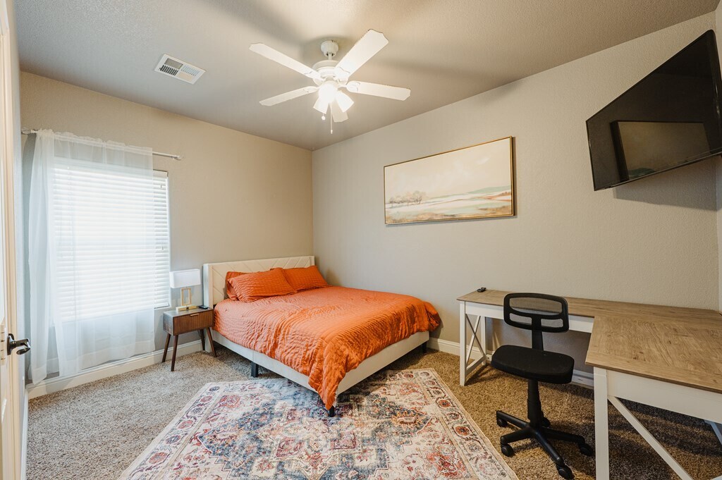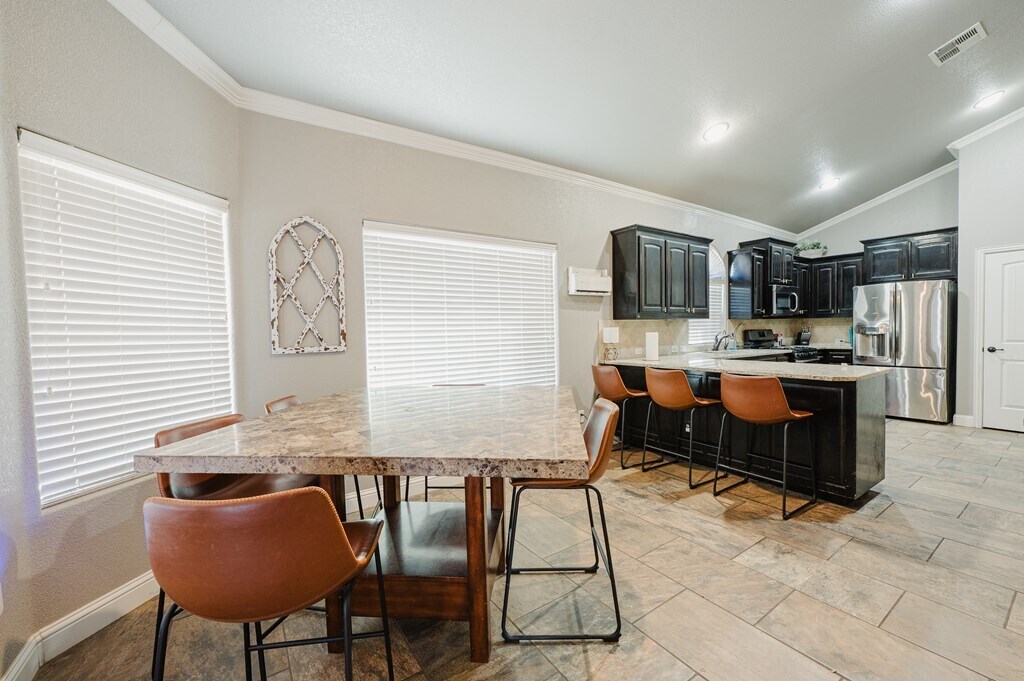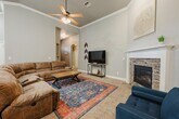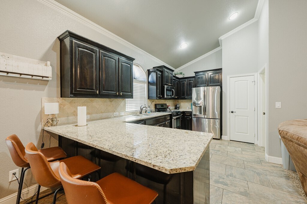 Fully furnished 4 bed, 2 bath rental with an open, inviting layout and stylish finishes throughout. Spacious living area features a cozy fireplace and flows seamlessly into the kitchen with ample cabinet space, granite counters, and stainless appliances. Primary suite offers comfort and privacy, while secondary bedrooms provide flexibility for guests or home office use. Covered patio and fenced backyard complete this move-in ready home—just bring your suitcase.