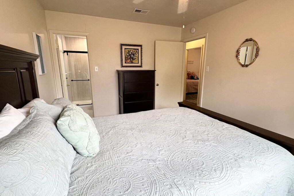Welcome to Sassy Shack, your charming Bryan getaway! Feel at home in this 3-bedroom, 2-bath home, just 15 minutes from Kyle Field. Perfect for families, friends, and game-day groups, this home blends comfort, style, and convenience for an unforgettable stay. The cottage-style kitchen, coffee bar, and spacious living area with high ceilings, plush seating, and a corner fireplace create the perfect space to relax or entertain. A Pack N’ Play is provided for little ones. This is a pet-friendly home, so bring your furry friends along for the adventure! A $200 non-refundable pet fee is required. Parking is allowed in respective areas on the property, garage, and driveway, accommodating 2–4 compact vehicles. Towing is enforced for any illegally parked cars; applicable fines/towing fees are the sole responsibility of the vehicle owner. This home is a short drive to historic downtown Bryan and local dining favorites like Koppe Bridge, The Tilted Pint Bar & Grill, Christopher’s World Grille, Cheddar’s Scratch Kitchen, Wings N’ More, and Fish Daddy’s Grill House. Kyle Field is 15 minutes away and historic downtown Bryan is 10–12 minutes away. Smoking is not allowed in or on the property. If there is any evidence of smoking, $400 will be retained to deodorize the home. Do not turn the thermostat below 69 during the summer as the unit could freeze, and the guest will be charged the cost to repair the heating/cooling system. When leaving in the summer season, turn the thermostat up to 80 degrees. When leaving in the winter season, turn the thermostat down to 60 degrees. People other than those accounted for in the booking agreement may not stay overnight. If unauthorized guests have stayed, a fee of $300 will be retained plus $25 per person. If a pet is found on the property without prior approval, a pet fee will be charged and the booking may be terminated. All trash must be bagged when placed in a dumpster. There will be a $20 charge if this rule is not followed. If the cleaning crew finds that the property has been left excessively dirty, you will be billed for the additional cleaning time at a rate of $50 per hour. Guests shall not disturb, annoy, endanger, or inconvenience neighbors, nor use the premises for any immoral or unlawful act. Should there be security cameras, guests may not alter, tamper with, or access in any way. Failure to follow this rule will result in charges for the full amount of the damages caused by such failure. [SI]