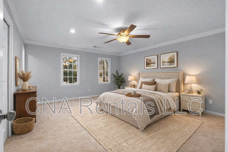 Beautifully updated 4 bedroom, 3.5 bath traditional home nestled on a quiet cul-de-sac lot in a desirable swim and tennis community, offering timeless charm paired with modern comfort in every space. From the moment you arrive, you’ll be welcomed by manicured landscaping, a charming pergola, and a serene koi pond creating a peaceful front yard retreat. Inside, crown molding flows throughout the home, adding elegance to the spacious living areas. The stunning kitchen features crisp white cabinetry, ample counter space, a breakfast bar, and a bright breakfast room perfect for everyday dining and entertaining. The family room is anchored by a cozy fireplace, creating a warm and inviting gathering space. A convenient main level laundry room offers a full wall of cabinetry for added storage. Upstairs, the spacious primary suite is a true retreat with his and hers walk in closets and a beautifully renovated ensuite bath featuring double vanities and a luxurious walk in shower. Three additional bedrooms and a well appointed hall bath provide comfort and flexibility for family or guests. The finished basement expands the living space with a large recreation room featuring a wall of built ins, a full bath, closet, and ground level access. Which makes it ideal as a 5th bedroom, in law suite, guest retreat, or private home office! The basement also includes the two car garage and access to the unique enclosed patio beneath the deck, complete with tile flooring and views of the fenced backyard. It’s an ideal space for year round entertaining, relaxing, or hosting gatherings. With thoughtful updates, abundant living space, and multiple outdoor entertaining areas, this home offers the perfect blend of comfort, style, and functionality. Minimum lease term of 12 months required. All occupants 18 years or older must complete an application ($75 fee paid online via credit card). Multiple applications may be reviewed at once. One time Security Deposit due upon signing of the lease.