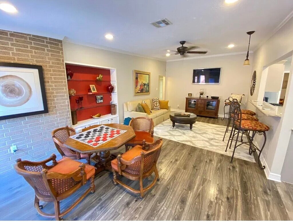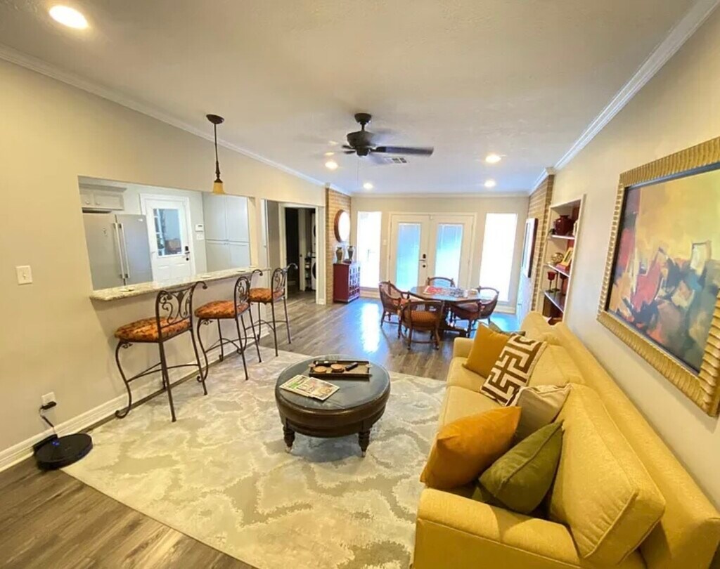 Beautifully upgraded on a quiet cul-de-sac friendly neighbors. Fully Furnished home. Available for 1 yr lease. Completely remodeled with updated baths,kitchen appliances and insulated windows. All new laminate floors. Insulated with electricity & AC. Landscaping/lawn service included in rent. Gorgeous patio with night string lights,comfortable sitting,Charcoal grill,wrought iron patio table with umbrella,privacy fence. Steps from the Bayou for walking & cycling. Steps away from the U of H campus,TSU,Medical Center Montrose area/Museum district. Retail shopping within 2 miles (HEB,ALDI'S Walgreens & CVS). Several nearby eateries. Alarm system Fully Furnished house. Available for 1yr rental All smoking,vaping or other illegal drugs are not allowed. No pets allowed. Vacant 60 day notice required Lawn service,security,and Internet included in rent. Utilities not included: Gas,Water,Electricity,Internet & Streaming ability is included Tenant pays all utilities. MLS# 22555769