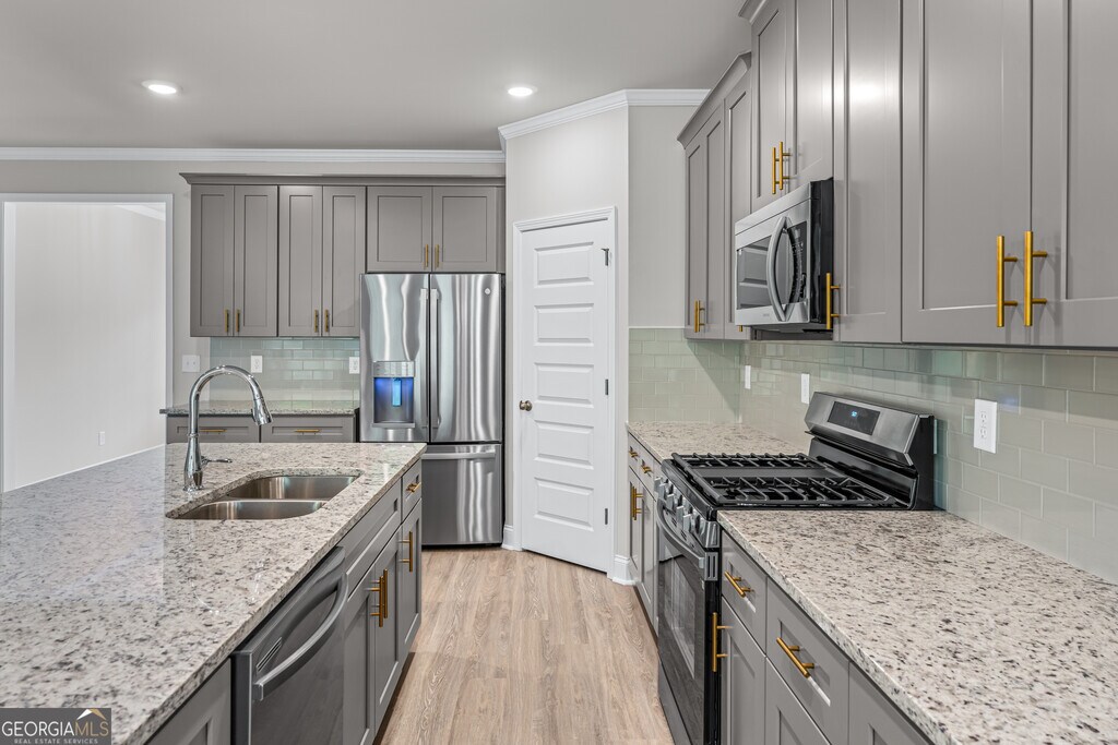 Spacious Brand-New 5 Bedroom Home for Rent in Lawrenceville - Move-In Ready! Discover modern living in this stunning new construction featuring 5 bedrooms, 3 bathrooms, and an open-concept layout designed for today's lifestyle. The gourmet kitchen is equipped with granite countertops, 42" soft-close cabinets, a large center island, and a view of the family room with a cozy fireplace-ideal for both everyday living and entertaining. The main floor showcases durable SPC hardwood flooring, while the bedrooms are finished with plush carpet and the bathrooms and laundry room with sleek ceramic tile. A guest suite with a full bath is conveniently located on the main level. Upstairs, you'll find four additional bedrooms, two full bathrooms, a spacious loft, and a laundry room-offering plenty of space for family, guests, or a home office. Enjoy a private, wooded backyard perfect for relaxing or hosting gatherings. With easy access to Ronald Reagan Pkwy (just 3 minutes away), this home is close to shopping, dining, schools, and everything Lawrenceville has to offer. Move-in ready-don't miss your chance to lease this brand-new single-family home in a prime location! Please note: A non-refundable application fee of $50 is required per adult applicant. This fee covers background and credit checks and will not be refunded under any circumstances.
