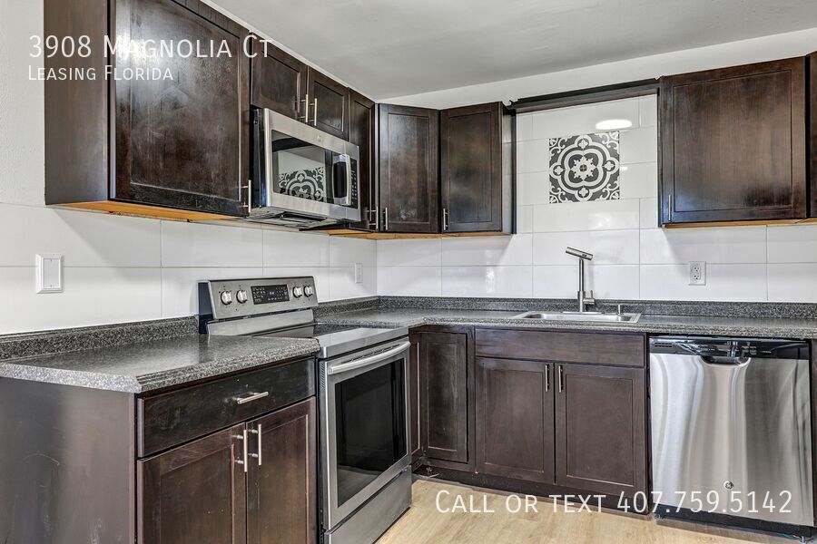 Welcome to 3908 Magnolia – a beautifully refreshed 3-bedroom, 2-bath home offering 1,222 sq ft of comfortable living space in the heart of Cocoa! This move-in-ready property blends modern updates with everyday functionality and inviting outdoor space. Step inside to discover luxury vinyl flooring, fresh interior paint, and dark-colored cabinetry that adds a rich, contemporary touch to the kitchen. Brand-new appliances complete the space, making meal prep both stylish and convenient. Ceiling fans throughout enhance comfort and energy efficiency year-round. The home features built-in closets for organized storage and a smart layout designed for easy living. Enjoy your morning coffee or unwind in the evening inside the screened-in patio, perfect for relaxing without the worry of insects. Outside, you'll love:A carport for covered parking,A fully fenced yard ideal for pets or play,A backyard space ready for entertaining, gardening, or simply soaking up the Florida sunshine.Fresh landscaping touches that enhance curb appeal, including mature palm trees that frame the home beautifully This property delivers comfort, style, and value in a convenient location close to shopping, dining, and major roadways. Don’t miss the opportunity to make this charming, updated home yours! Obligo no security deposit alternative is available for this property.