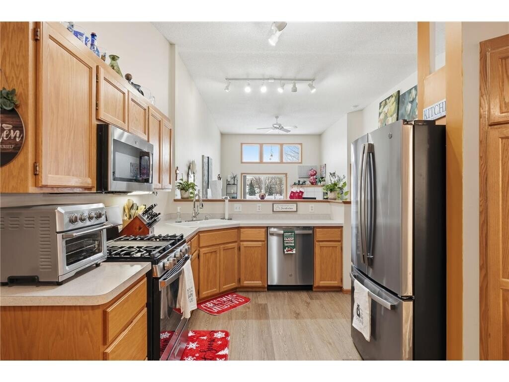 Experience elegant living in this exceptional townhome featuring breathtaking views of Edinburgh Golf Course from your main living areas and primary bedroom. The bright and open main level showcases vaulted ceilings, a cozy gas fireplace, modern LVP flooring, and recently updated mechanicals, with a luxurious primary suite including a spacious walk-in closet, plus two additional bedrooms and a full bathroom. The walkout lower level provides versatile living space with a spacious family room, an additional bedroom, and a 3/4 bathroom—ideal for guests, a home office, or recreation. Minutes away from Hy-Vee, restaurants, shopping, dining, and outdoor recreation including parks and trails, with easy access to Highway 610 for commuting. This move-in ready townhome in an unbeatable setting combines a peaceful golf course view with urban convenience.