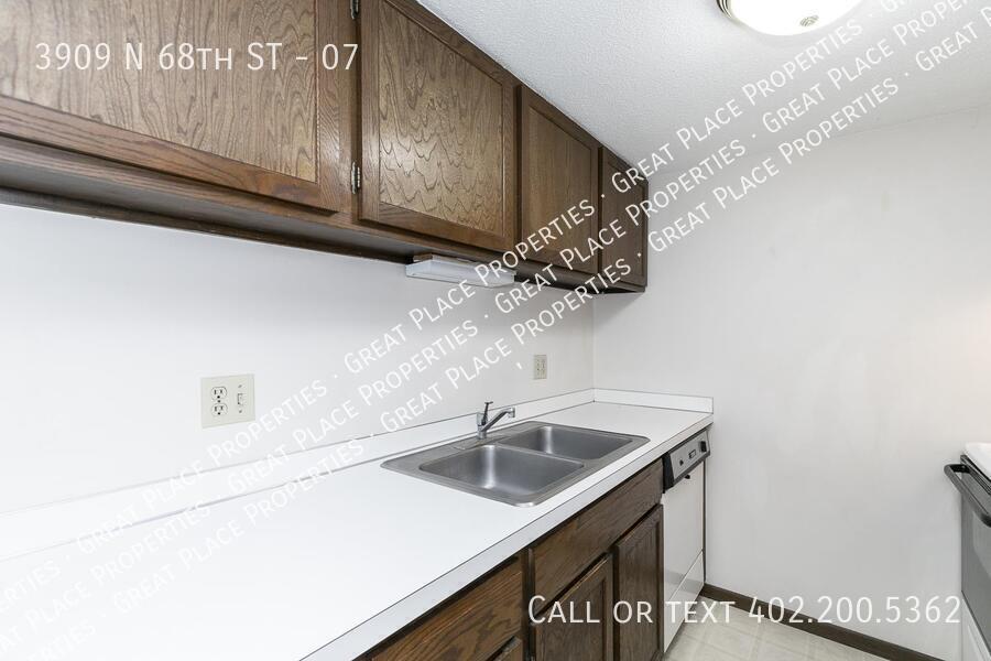 This one bedroom apartment at 3909 N 68th Street is located near the Historic Havelock Neighborhood. The kitchen is complete with dishwasher, electric range, oven, and refrigerator. There is a dining area large enough for a table and chairs. The bathroom has a tub and shower combination and a nice size vanity with storage. The bedroom is big enough for a larger bed and has two closets with side by side mirrored doors. There is a parking lot west of the building. Coin laundry is on site and very convenient extra storage lockers allow you to keep garage-type items packed away. NO SMOKING ALLOWED. Cats allowed* One-Time Pet Fee: $250 Monthly Pet Rent: $50 limit of two cats HEAT AND HOT WATER PAID BY OWNER. *The actual unit may be different than the one shown.