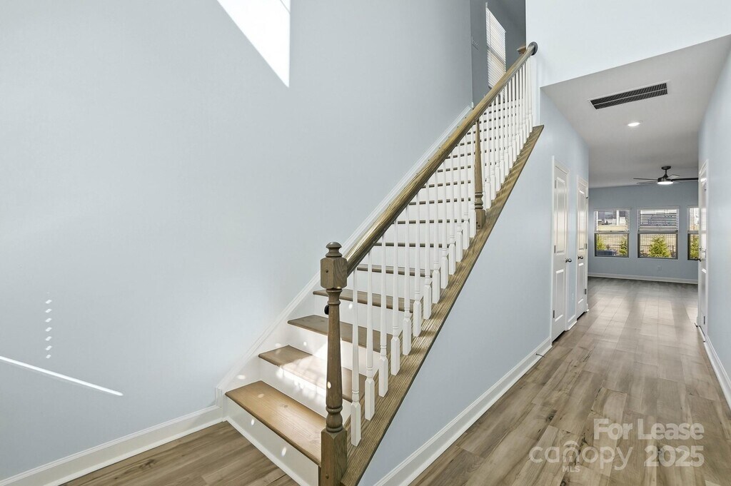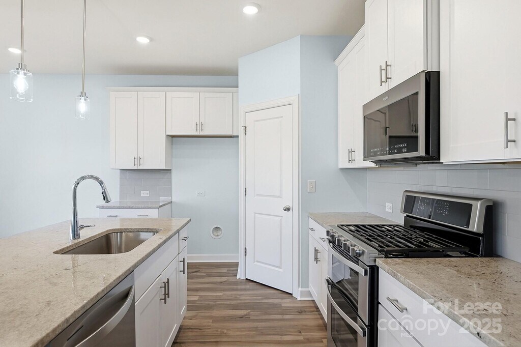 Welcome to this well-maintained,eco-friendly 3-bedroom,2.5-bath rental home located in the desirable Larkhaven Hills subdivision. The main level features an impressive two-story foyer and an open floor plan designed for comfortable everyday living. The eat-in kitchen includes a dedicated dining area,white cabinetry,granite countertops,stainless-steel appliances,and a spacious walk-in pantry. Upstairs,the primary suite offers a private ensuite with dual vanities,a large walk-in shower,and generous closet space. Two additional bedrooms,a full bath,a versatile loft area,and a conveniently located upstairs laundry room complete the upper level. Residents enjoy access to community amenities,including a clubhouse and swimming pool. This home combines modern finishes,a thoughtful layout,and a welcoming neighborhood setting—ideal for long-term rental living. Located minutes from downtown Mint Hill.