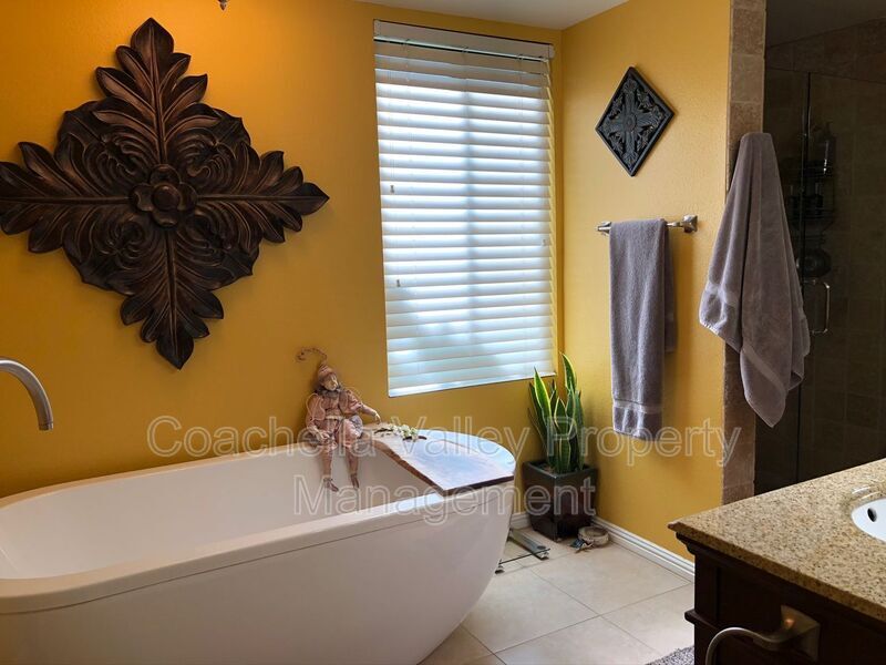 Gorgeous pool home @ the presitigious Avondale HOA in Palm Desert! This lovely home boasts a beautiful renovated gourmet kitchen with stunning updated counters, double oven, stainless steel appliances and extra stylish! Tile and carpet throughout, open layout--nice pool view from your living room, 2-Car garage, beautiful master suite with soaking tub and shower, ceiling fans, large closets, washer/dryer and a backyard to die for! The relaxing pool and spa will make for any Sunday funday! Lush green grass on the side of the house to accent the pool. HD Cable with HBO and Showtime included, community gym available. Home offered unfurnished. You don't want to miss this one! Please call Coachella Valley Property Management at for more information or to schedule an appointment for viewing. All Applicants Must Have the Following: Minimum Monthly Income of 3 Times the Monthly Rent, No Prior Evictions, Good Rental History, No Bankruptcy Filings, No Previous Felonies. *** If you see this home advertised online for less than the rental amount quoted here, the ad is a SCAM. We are the only authorized agent for this property. Please email us a link to any bogus or fraudulent ads so we can report it to the appropriate authorities. Please do NOT send money to anyone who offers keys in exchange for a deposit check - especially if they are out of state. When in doubt, please feel free to contact us. *** Amenities: washer/dryer in unit, private pool