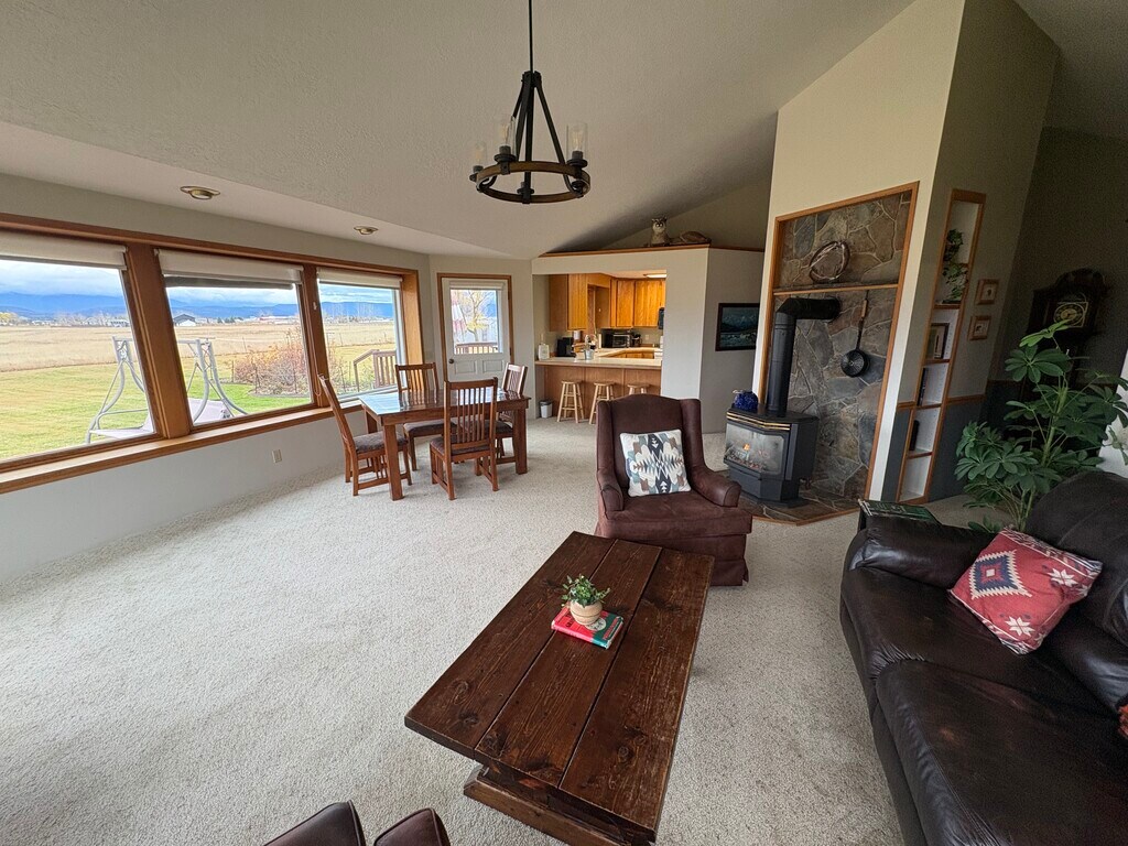 Stunning views from this peaceful 2 bedroom, 2 bathroom Lower Valley rental. Quiet setting on large property. Walk out onto your large deck and and enjoy unbroken views of the entire Swan Mountain Range. This fully furnished townhouse includes a one car garage, in unit laundry, gas fireplace in the living room and open floorplan. All utilities are included in the rent. For more information call Matt Ernst with TIMBER property management at .
