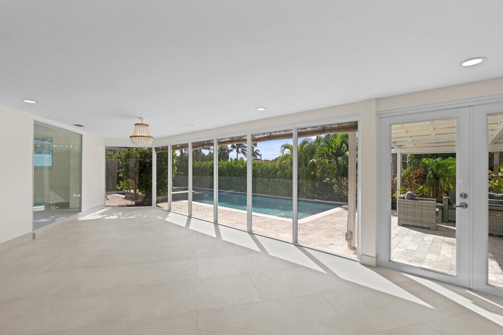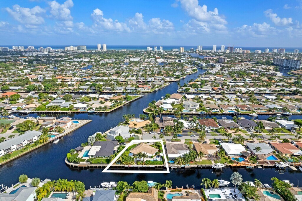 Experience luxury waterfront living in this breathtaking canal-front home featuring wide-water views, a sparkling pool & spa, private dock, and no fixed bridge ocean access. Split bedroom design, LED lighting, and elegant tile flooring. The chef's kitchen impresses with quartz countertops, 42'' white wood cabinetry, stainless steel appliances, and bar seating. Each bedroom includes its own en-suite for privacy and comfort. The primary suite offers custom built-in closets, a spa-style bathroom with dual vanities, frameless glass shower. Step outside to a stunning marble travertine patio with pergola, outdoor bar and kitchen, a reinforced seawall, impact windows and doors, and a desirable canal end lot. Ideally located on a quiet cul-de-sac just minutes to the beach Pompano Pier, boardwalk.