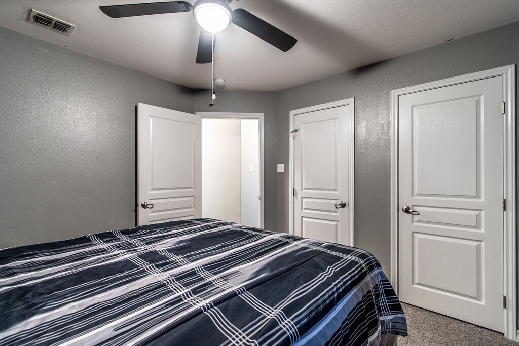 Beautiful Southside Home with Bonus Back House Welcome to this spacious 4-bedroom, 3-bath Southside home featuring a 2-car garage and durable brick exterior. Inside, you’ll find a warm and inviting layout with plank wood flooring, carpeted bedrooms, and ceiling fans in every room. The cozy living area offers a gas or wood-burning fireplace, perfect for relaxing evenings. The chef’s kitchen comes equipped with granite countertops, a gas stove, and generous prep and storage space. The main bedroom includes a walk-in closet with custom shelving, a large walk-in shower, and a double vanity. A second double-vanity bathroom in the hallway adds convenience and comfort for guests and family. Step outside to a fully fenced yard and discover the bonus back house—ideal for a home office, guest suite, studio, or additional living space. This home blends comfort, practicality, and versatility—ready for you to make it your own! Contact now for a tour! . Apply: