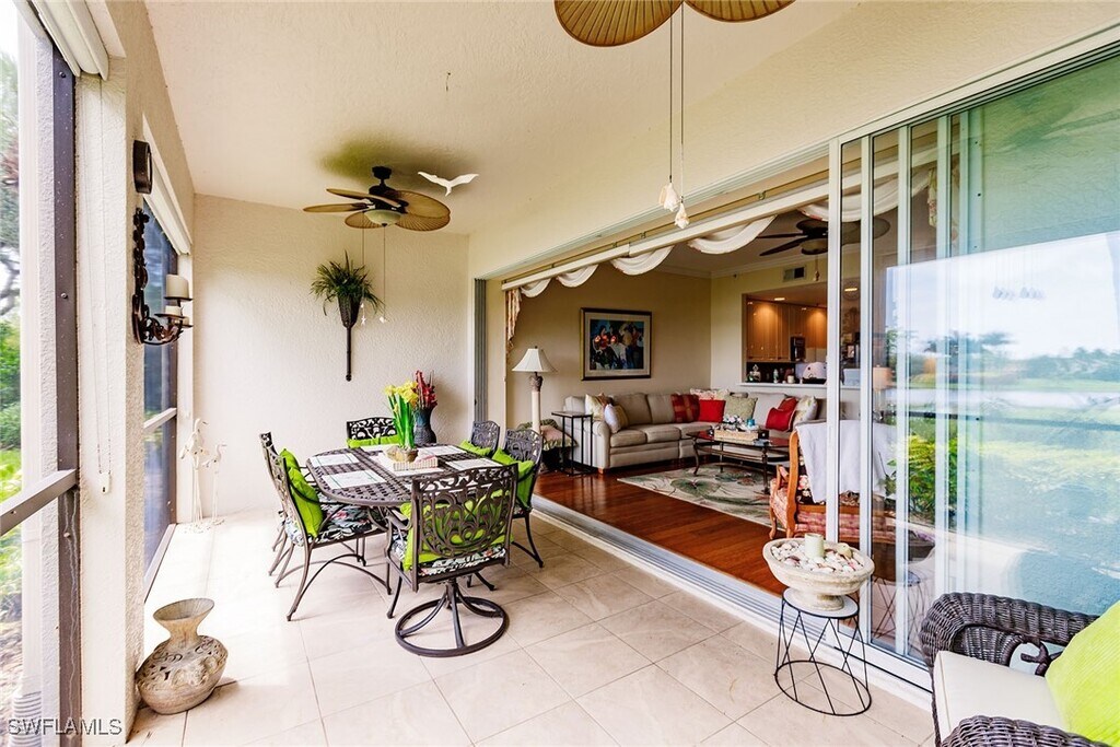 Beautiful 3-bedroom first floor condo in Fiddler's Creek. Superb location near the front. Fantastic view of lake and golf from the lanai and living room. Kitchen is updated with stainless appliances. Sliding glass doors to the lanai open full width to allow a seamless connection with the outdoors. Since this is a first-floor unit,the lanai has access to the outdoors. Fiddler's Creek is only 10 minutes from spectacular Marco Island. Don't miss this one,make it your home away from home for the holiday season!