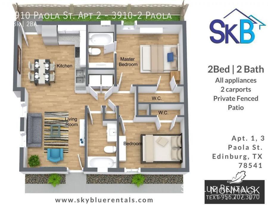There is currently a 2 Bed 2 Bath Apartment for rent with 930 listed at 3910 Paola St. It is Available Now.