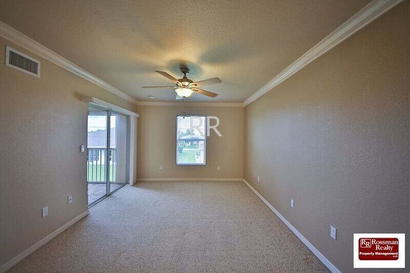 Prestigious SW Cape Coral reminiscent of Old Santa Barbara, newer 2007 construction, 2nd Floor large 2/2, small exclusive 19 unit (nearly 1390 sq. ft includes lanai per appraisal), new washer/ dryer upon request if needed, granite counters, crown molding, split bedrooms for privacy, tile and carpet flooring, much storage and closets, master bath has tub/ walk in shower, upgraded appliances, two entrances to lanai, sparkling pool, BBQ grills, tile murals, Spanish tile roofs, lush landscape, covered parking plus guest parking, hurricane windows, quality construction. Responsive ownership and management. Sorry no pets. $140 flat fee for water utilities, no water deposit & $25 Trash fee. NO HOA Application.