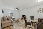 Feel at home in this stylish and fully furnished 2-bedroom apartment in South Tampa, offering a perfect blend of comfort and convenience. This thoughtfully designed apartment features a modern kitchen with stainless steel appliances and natural stone countertops, a full-size in-suite washer and dryer, and a modern bathroom that includes a jacuzzi soaking tub. The primary bedroom is spacious and well appointed with a king-size bed, and the second bedroom has two twin beds. Generous storage is available throughout. Enjoy access to beautifully landscaped outdoor amenities, including a resort-style pool with loungers, a covered lounge area, fire pits, and BBQ grills. One free parking space is included. Located in the heart of South Tampa, this apartment is conveniently located just minutes from Tampa International Airport, major hospitals, MacDill Air Force Base, Hyde Park, shopping centers, dining, and Tampa’s beaches. This is a quiet, boutique residential building, and guests are asked to be respectful of neighbors at all times. No parties or events are permitted. Includes a dedicated workspace with high-speed internet, a smart TV, and high-speed Wi-Fi. Guests will enjoy secure, contactless access throughout their stay. Entry to the community is through a gated entrance using a provided access code. Each apartment is equipped with a smart lock and personalized door code. Codes are unique to your stay and active for the duration of your reservation. Check-in instructions, access codes, and parking details will be sent 24 hours before arrival. [SI]