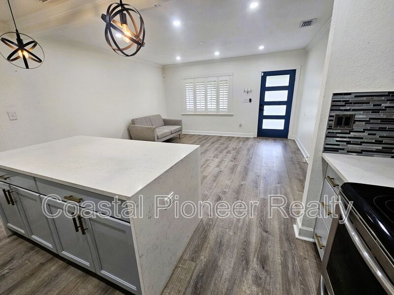 Move-in Ready Updated 2 Bedroom, 1 Bathroom Home in the Fairlawn Estates Community of South Tampa. Maintenance-free Wood Tone Vinyl Plank Flooring and Plantation Shutters are installed throughout the entire Home. The Chef’s Dream Kitchen opens to the Living Room with plenty of Recessed Lighting. The Kitchen has Stainless Steel Appliances, a Decorative Tile Backsplash, a Large Double Sink, Quartz Counters, Wood Cabinets, and a Waterfall Island with Storage and space for Barstools. Both Bedrooms are in perfect condition, have Double Closets, Crown Molding, and share an updated Bathroom with Shower. The Family Room is at the back of the Home. The Vaulted Ceiling, multiple Windows, and Glass Sliders make this area feel Light and Bright. A Laundry Room with Washer/Dryer and Shelving is behind the Sliding Barn Door. You will spend many hours relaxing and entertaining under the Covered Patio and in the oversized newly Fenced Backyard. The Property has a 1 Car Garage with an extra Storage Room in the rear. Additional Cars or a Boat can be parked on the right side of the Home behind the Double Door Gate. Pets (2) permitted (pet screening and owner approval are required). $350 non-refundable pet fee for each pet. The property is Professionally Managed and Maintained. There is a one-time $150 Administration Fee and $75 Application Fee for each applicant 18 years or older. Applicants should have a minimum 600 Credit Score, Gross Monthly Income of at least 2.5 times the Monthly Rent, and stable Rental History (no Evictions or Tenant Collections). Amenities: Fenced Backyard, Patio