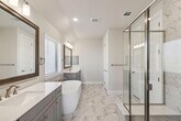 Make this your last renter .This stunning 4-bedroom, 3 bath home boasts an impressive array of features. All secondary bedrooms are oversized with walk-in closets. The spacious living area with a modern 60-inch linear fireplace is open to the gourmet Kitchen. A 3-panel slider completely opens to the expansive kitchen featuring a 5-burner gas cooktop, 36-inch SS Hood, Double Oven, and ample shaker style cabinetry with a built-in microwave. The Primary Suite features coffered ceilings with a large ensuite bath featuring split dual vanities, separate stand-alone tub, recessed and tiled shower with a separate seat and a large walk-in closet. This home is turn key ready with front and backyard landscaping, sprinkler and drip systems, a full security system, 5.1 surround sound and whole house window blinds included.