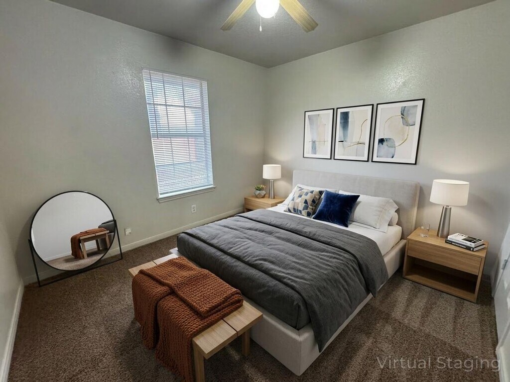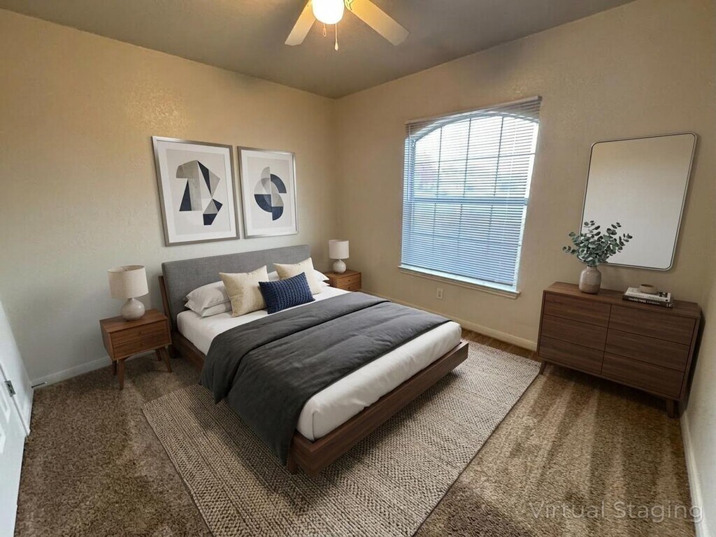 View 360° virtual tour: Welcome to this charming 3-bedroom, 2-bathroom home located in Killeen, TX. This cozy house features a beautiful brick fireplace, perfect for cozy nights in. Elegant bay windows frame the in-kitchen dining area adjacent to the living room. There is also a formal dining room near the entrance of the home. The primary bedroom's ensuite bath features a dual vanity and shower/tub combo. Enjoy the convenience of a laundry room with washer and dryer connections, a covered back patio, fenced-in backyard, and attached 2-car garage. Pet Deposit: $300 refundable pet deposit, per pet pending any damage(s). No more than two (2) pets. No aggressive breeds (Pit Bulls, Dobermans, Rottweilers, or Chows) will be allowed. Appointments aren't required to tour. Contact us or stop by our Killeen office to learn more and see this home in person once it becomes available! We are located at 1020 W Jasper Drive, Killeen, TX 76542. Disclaimer: The furnishings or enhancements shown are AI-generated and intended for inspiration only. They may not reflect the actual scale, condition, or current features of the property.