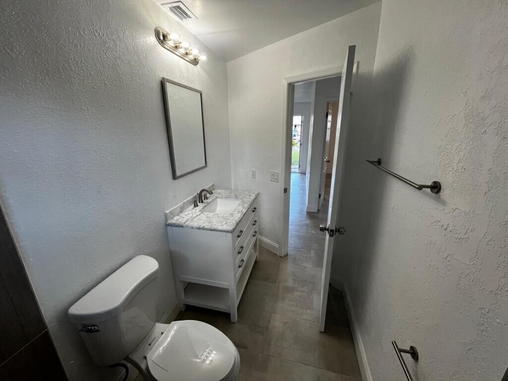 This large and updated 2-bedroom, 1-bath unit offers comfort and convenience in a quiet, centrally located neighborhood. Enjoy a modern kitchen featuring white shaker cabinets, stainless steel appliances, and sleek tile flooring throughout. The home includes hurricane-impact glass, assigned parking, and a private backyard with a covered patio-perfect for relaxing or entertaining. Minutes from shopping, dining, and major transportation routes. Schedule your showing today!