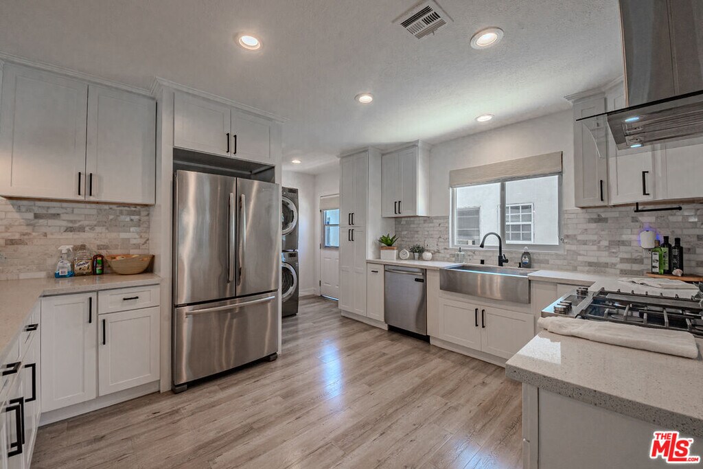 Nestled in Crenshaw Manor, one of Los Angeles' most sought-after neighborhoods. Thoughtfully designed for easy living, the property features high-end touches like Jenn Air appliances, Carrera marble tile, quartz countertops, and an open-concept layout filled with natural light. With nearly 1,700 square feet of space, the home includes a spacious master suite with direct backyard access, along with three additional bedrooms, perfect for a family, guests, or a home office. The expansive 6,100+ square foot lot provides plenty of room for outdoor enjoyment and future enhancements, such as adding a pool or converting the garage into an ADU. Ideally located near the Metro and 10 Freeway, this home makes it simple to access the beach, the Eastside, and all that Los Angeles has to offer. Eco-conscious tenants will love the paid-off solar panels, Alexa-enabled Ecobee Thermostat, and Ring security system, which enhance both sustainability and peace of mind. Situated on a peaceful, tree-lined street in a vibrant, community-oriented neighborhood, this home makes it easy to enjoy everything LA has to offer while living in comfort and style. MLS# 25568477