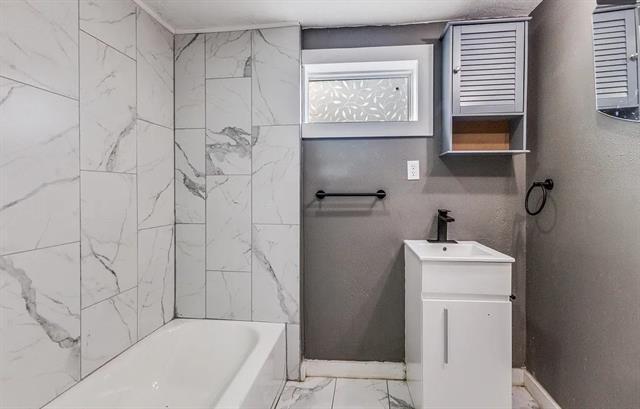 Charming 2 bed, 2 bath home in Dallas, TX, minutes from Parkdale Lake with quick access to major highways. Open-concept layout with vaulted ceiling in living area. Kitchen features stainless steel appliances, double-door refrigerator, electric oven & stovetop, and commercial grade vent hood. Kitchen opens to dining and living areas. Fenced backyard and 1 car detached garage. Convenient location and move in ready.
