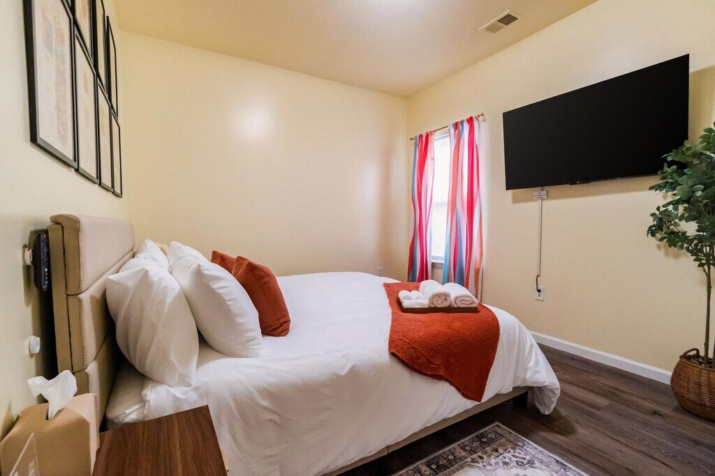 Feel at home in this stylish 3-bedroom, 2-bathroom home in Charlotte, just 10 minutes from Uptown. This single-family home offers 1,250 sqft of living space. This home features a fully equipped kitchen with a refrigerator, stove, microwave, and coffee maker. The welcoming living space is filled with natural light and modern decor. Step outside to the large backyard, complete with a private hot tub, fire pit area, grill, outdoor seating and dining space, and a cornhole game. Enjoy reliable internet and climate control via the Nest thermostat in the hallway. Centrally located with quick access to I-85 and local highways, this home is just a 10-minute drive straight into Uptown Charlotte. You'll find local shops, grocery stores, and family-friendly attractions nearby, offering both convenience and a peaceful environment. Parties and events are fully prohibited. Quiet time is from 10 PM to 6 AM. There is a $300 penalty for smoking on the property, and you will be dismissed from your rental without a refund. There is a $250 penalty if noise level, parties, or other obscene behavior requires a police callout, and you will also be dismissed from the property without a refund. There is a $100 penalty for leaving trash outside the entrance to your property. Only guests registered at check-in may access the property, and no visitors are allowed once the apartment's maximum capacity is reached. Minors must be accompanied by their parents or provide a notarized written authorization to stay. Hot tub safety rules must be followed, and note that the backyard is not fenced. Check-in is at 4 PM and check-out is at 10 AM. [SI]