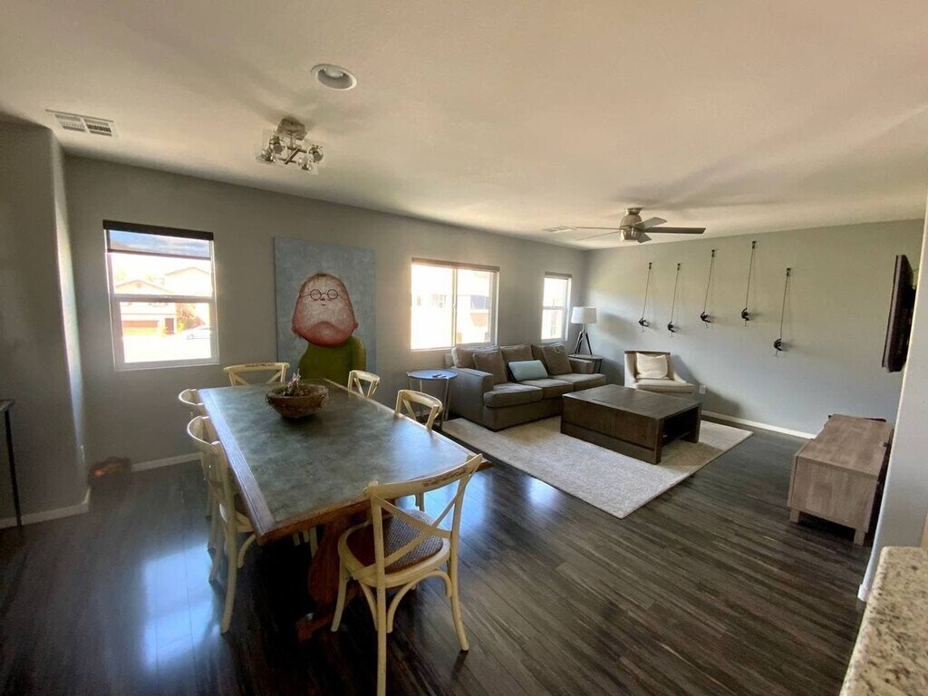 WELCOME TO 3916 DELUGE DR! THIS MODERN HOME IS LOCATED IN THE LOVELY HILLSIDE COMMUNITY SURROUNDED BY A POOL, BASKETBALL COURT, PLAYGROUND, AND PARK! THIS HOME IS EQUIPED WITH VINYL FLOORING, CEILING FANS, WATER SOFTNER AND UPGRADED LIGHT FIXTURE! THE KITCHEN PROVIDES A LARGE KITCHEN ISLAND, GRANITE COUNTERTOPS, AND STAINLESS STEAL APPLIANCES! PRIMARY ROOM HAS AN ENSUITE WITH DUAL SINKS AND LARGE WALK-IN CLOSET. LOVELY ROOFTOP DECK W/ AMAZING MOUNTAIN & STRIP VIEWS W/ BUILT IN GAS BBQ! GO TO TO APPLY ONLINE AND FOR VIEWING THE PROPERTY BY CLICKING ON THE LISTING CALL FOR MORE INFO OR SCHEDULE A SHOWING $400 MOVE-IN ADMIN FEE (NON-REFUNDABLE) $500 PET FEE – PER PET (NON-REFUNDABLE) $55 SEWER & TRASH $55.95 RESIDENT BENEFIT PACKAGE NO SMOKING ALLOWED