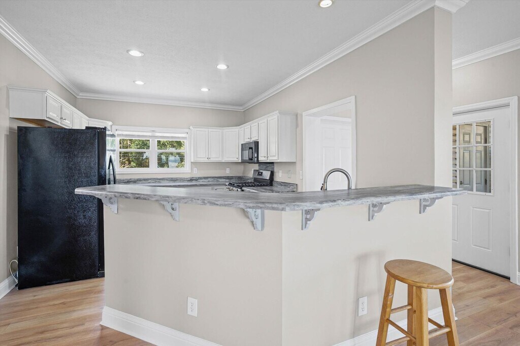 Experience serene bayfront living in this wonderful retreat on Mobile Bay, offering expansive water views and a generous back deck perfect for relaxing or entertaining. Designed for convenience, all living spaces are located on one level. Built in 2007, the home now features fresh paint and brand-new flooring throughout for a clean, modern feel. Step inside to find an airy, open layout highlighted by tall ceilings, elegant crown molding, and a family room flooded with natural light. Large windows frame picturesque views of the bay and the majestic oak trees that surround the property. The primary bedroom, positioned on the bay side, treats you to peaceful water views from both the bedroom and the ensuite bath. The open kitchen with a breakfast bar makes everyday living easy and hosting guests a pleasure. Enjoy multiple outdoor living areas—spacious upper and lower decks designed for gatherings, morning coffee, or sunsets. Practical features add even more value: abundant covered parking beneath the home keeps you dry on rainy days, and a convenient lift with remote control makes bringing groceries and belongings upstairs effortless. The property also offers low-maintenance vinyl siding, a durable metal roof, and a powered workshop shed complete with workbenches. Wake up to beautiful sunrises and unwind to gentle bay breezes—this is coastal living at its best. Call Brett Kittrell at for showings or questions. Apply online at