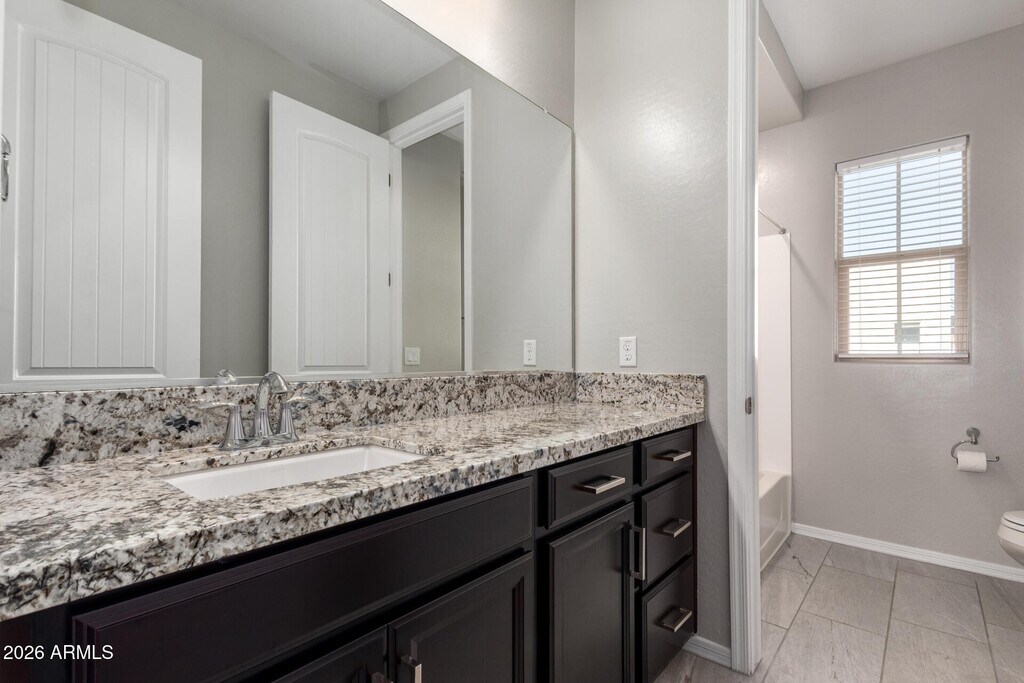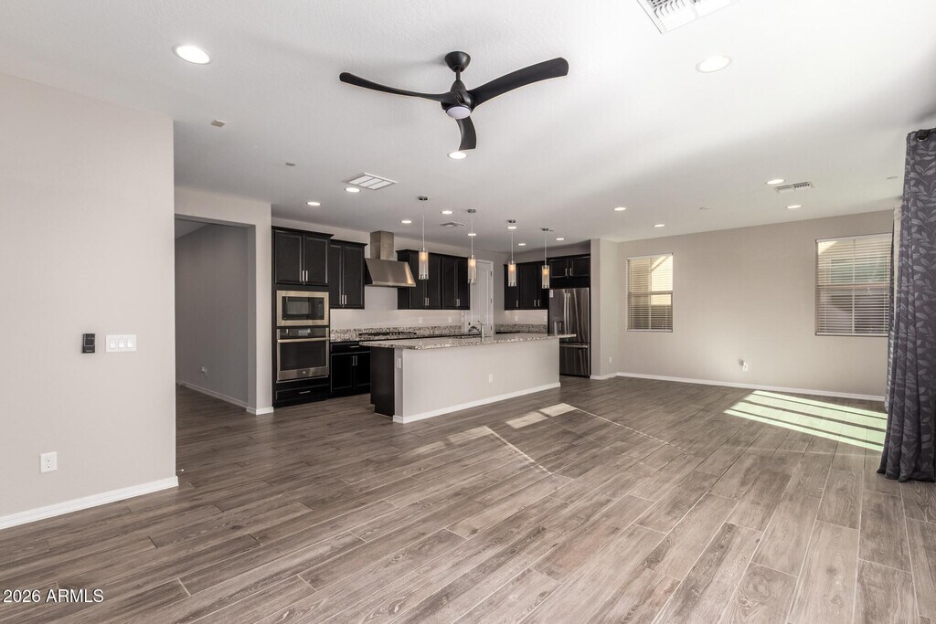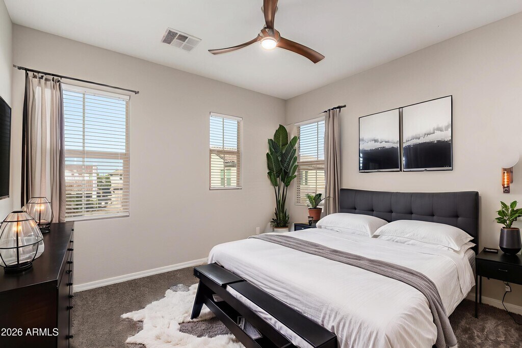 This 4-bedroom,2.5-bathroom home boasts a large great room and a high-end kitchen equipped with stainless steel appliances,upgraded cabinets,Quartz countertops,and designer flooring. Extensive upgrades are featured throughout the property,including a landscaped backyard and a full-size washer and dryer. Located just half a mile from the San Tan/Loop 202 Freeway,with easy access to shopping,dining,and entertainment. Nearby amenities include a community pool,covered play areas,picnic spaces & BBQ facilities. Home comes with a smart home automation system (Ring Video Doorbell Elite,Eero Wi-Fi system,CAT6 wiring,and Wi-Fi connected thermostats,door locks,light switches and garage door.