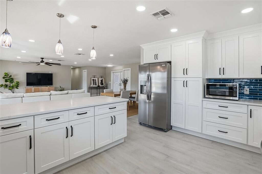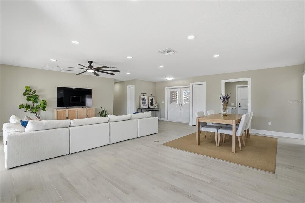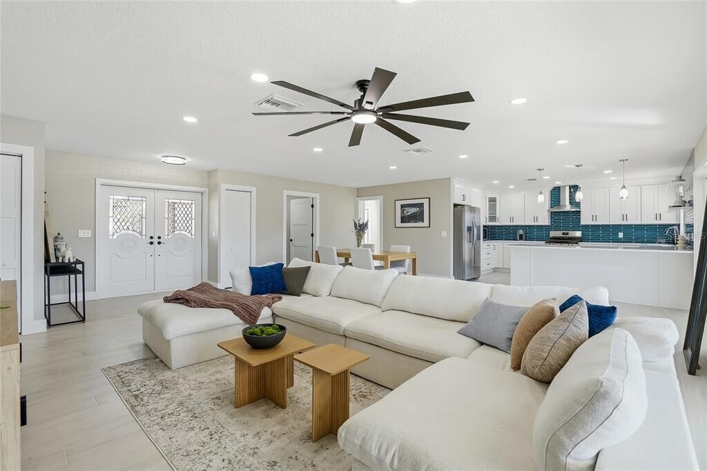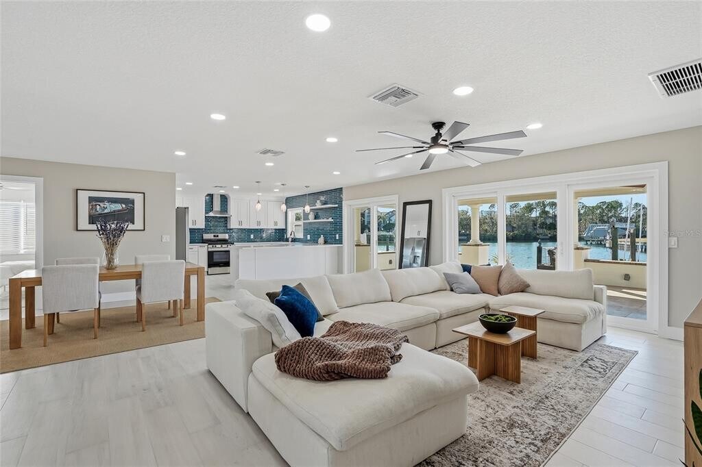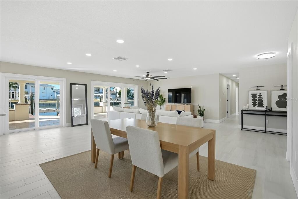Boaters and waterfront lovers,LOOK NO FURTHER! This stunning 4-bedroom,3-bath pool home with a two-car garage is perfectly positioned on a beautiful canal with direct access to Tampa Bay. Featuring a private dock with two electric boat lifts (one rated for 16,000 lbs and the other for 13,000 lbs),this home is truly a boater's dream. Offering just over 2,000 square feet of living space that feels much larger,this residence showcases an open-concept design where the chef's kitchen flows seamlessly into a spacious great room-ideal for entertaining. The kitchen is equipped with a stainless steel appliance package,gas range,breakfast bar,and abundant counter space. The home was completely gutted and thoughtfully renovated,with every inch carefully designed. All plumbing has been redone,and the entire home features elegant light gray wood-look tile flooring throughout. A dedicated laundry room leads directly to the garage,and the washer and dryer are included. Step through beautiful sliding glass doors to your private backyard oasis overlooking Tampa Bay,with canal access straight to the Gulf of Mexico. The outdoor living space features travertine decking,a sparkling saltwater pool,and a built-in outdoor grilling area-perfect for relaxing or entertaining while enjoying water views over one of the largest and deepest salt water canals in Dana Shores! The owner maintains both the pool and pest control,and the property includes lush artificial turf for truly maintenance-free living. The yard is fully fenced for added privacy. Enjoy waterfront views as well from the primary suite with an ensuite bath featuring dual vanities,an enormous glass enclosed walk in shower with dual shower heads and a large walk-in closet with custom built-ins. Centrally located,this exceptional waterfront home is just minutes from Tampa International Airport,International Mall,and an array of dining,shopping,and entertainment options. This is Florida waterfront living at its finest-move-in ready and designed for the ultimate boating lifestyle. MLS# TB8476928
