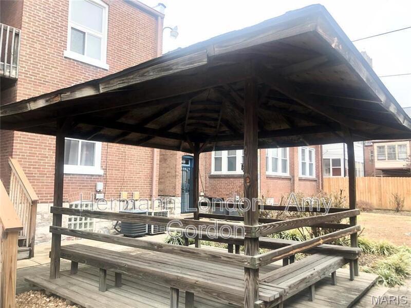 Don't miss out on this adorable second floor 1 bed, 1 bath unit. Just blocks from Tower Grove Park and Botanical Gardens! Features include beautiful hardwood floors, exposed brick, coffered ceiling in dinning room, bright updated kitchen with pantry, private front porch, updated bathroom, dedicated washer/dryer in basement, extra storage in basement, backyard with gazebo and much more! Water, Sewer & Trash included. Possible garage space available for $50 per month. Medium size pets 50 lbs or under allowed with owners approval. $350 one-time non refundable pet fee and pet rent $50 per month. (2 pet max) No smoking allowed. Available for move in around December 1st.