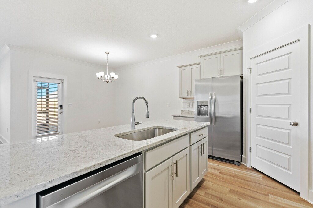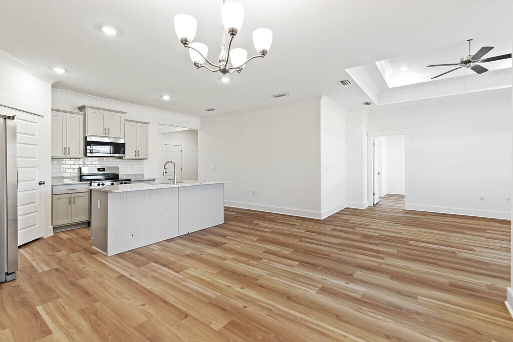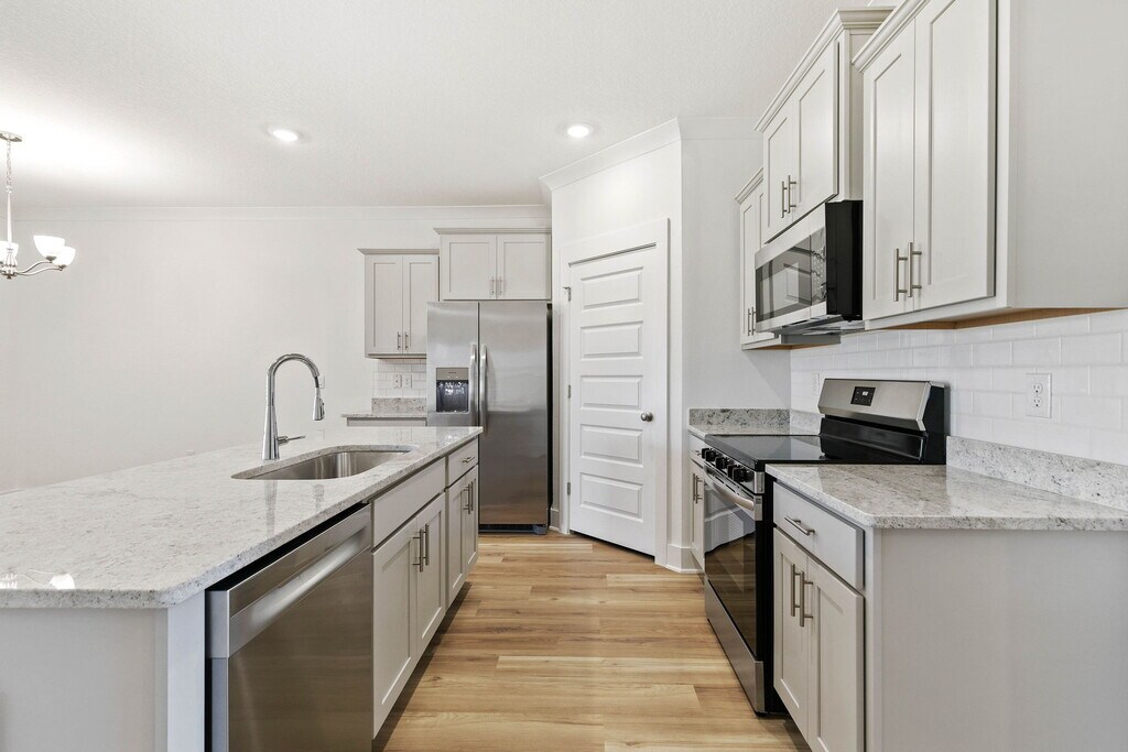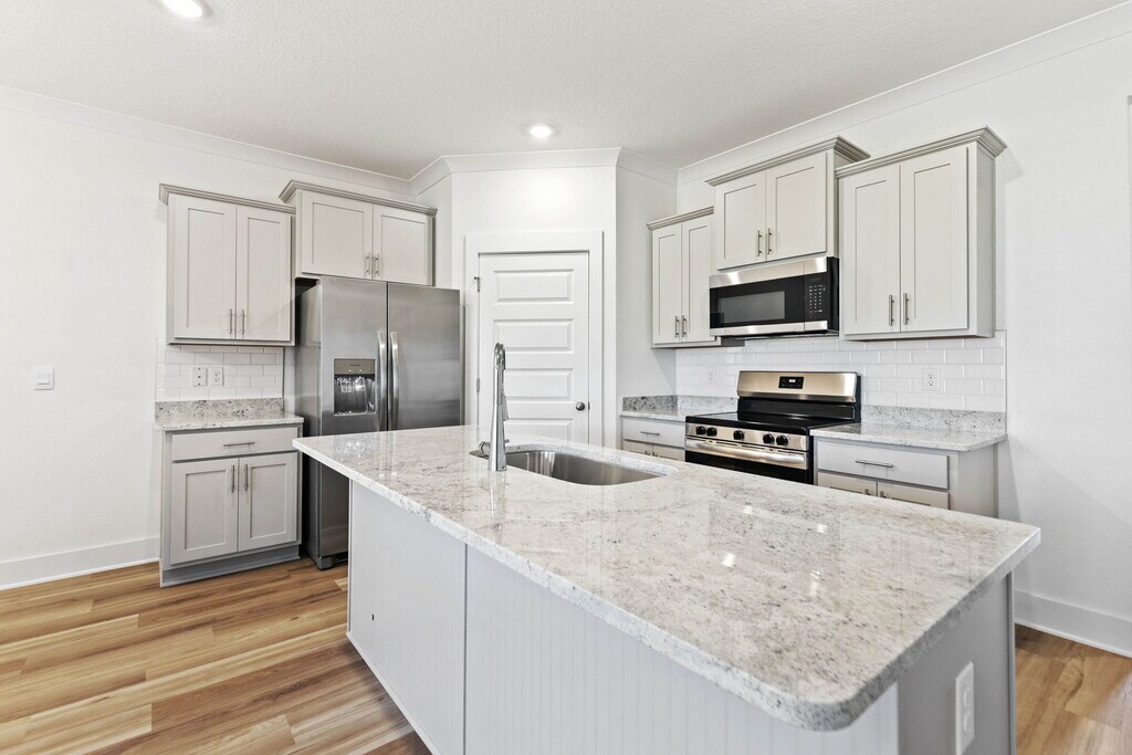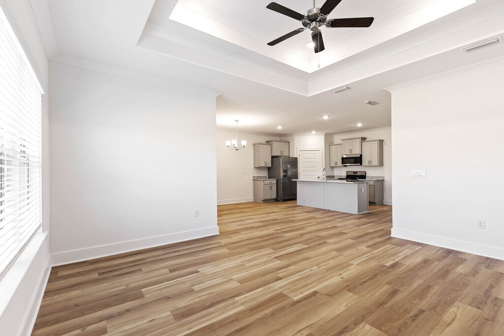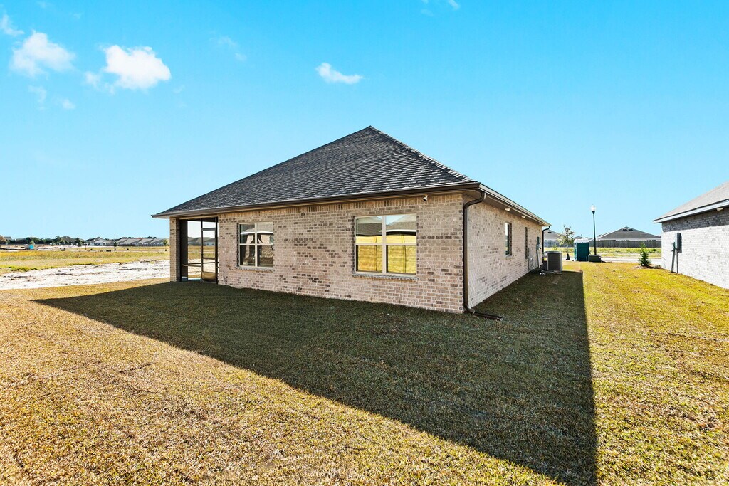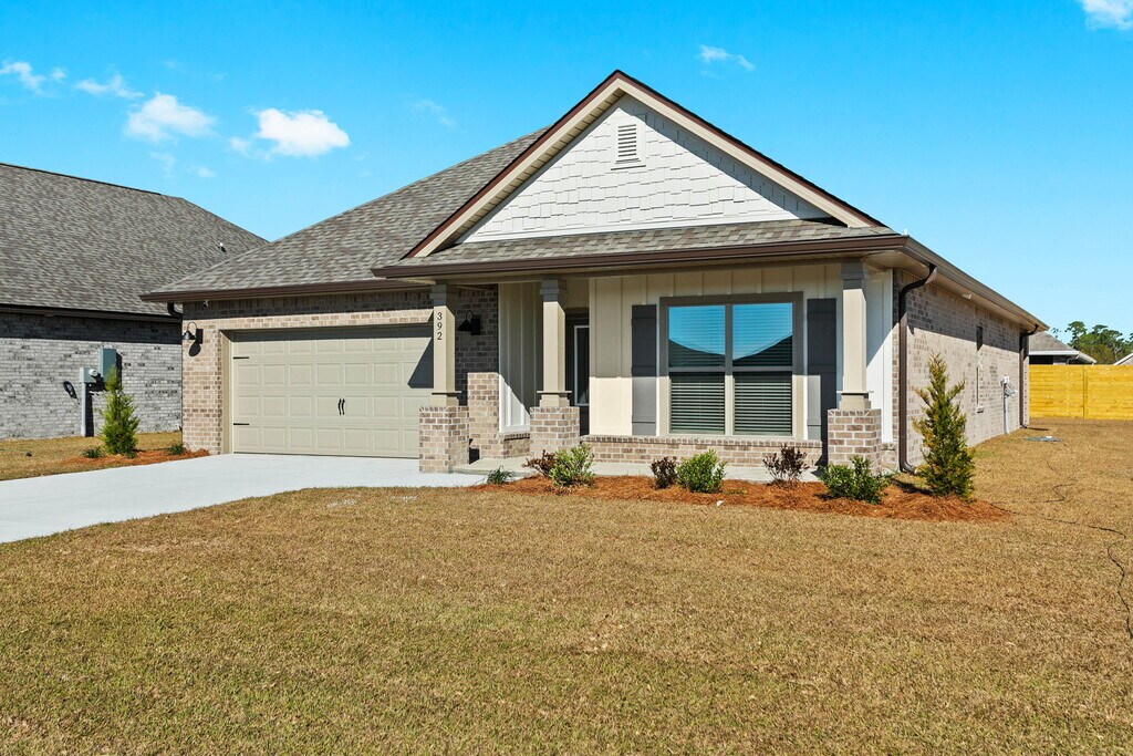Brand new construction home in the beautiful Raley Farms community. Just minutes from the white, sandy beaches of Gulf Shores. This one-story, 4 bed, 2 bath home features 1835 square feet of open living space and a split bedroom plan. Features of this home include vinyl plank floors, quartz countertops, soft close cabinets, large breakfast bar, walk in pantry, large single bowl under mount stainless sink, stainless steel appliances, two ceiling fans, trey ceiling, crown molding and two covered patios front and back. Back porch is screened in. Primary bedroom with large ensuite bath has double vanity, walk-in shower, soaking tub and huge walk-in closet. There is plenty of room for parking with the attached double car garage and driveway. This is a "Smart Home". You can control the ring doorbell, lock and unlock front and back doors, open and close garage, control HVAC system, and control security cameras in the front and back of the house all from your smart phone. Community amenities include a large community pool, sidewalks, common area, and more! Pets Welcome. Excellent Gulf Shores schools. Just minutes from the new Gulf Shores High School that will be opening fall of 2026. Contact for a date and time for a tour.