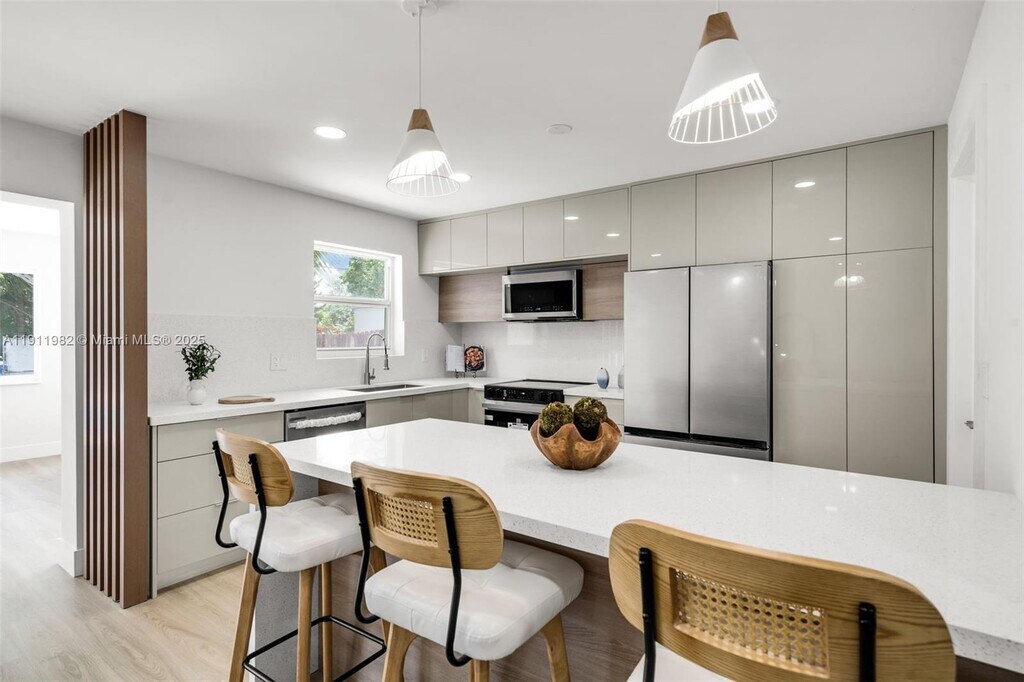 Your next home is ready! Beautifully renovated 3-bedroom, 2-bath home with 1,558 sq ft of living space in desirable Hollywood Hills. Featuring an open-concept floor plan filled with natural light, a modern kitchen with quartz island and stainless-steel appliances, and central A/C. Enjoy a private fenced backyard with a sparkling pool and spacious patio — perfect for relaxing or entertaining. Includes garage and laundry. No HOA. Conveniently located near top-rated schools, parks, shopping, and just minutes from the beach.
