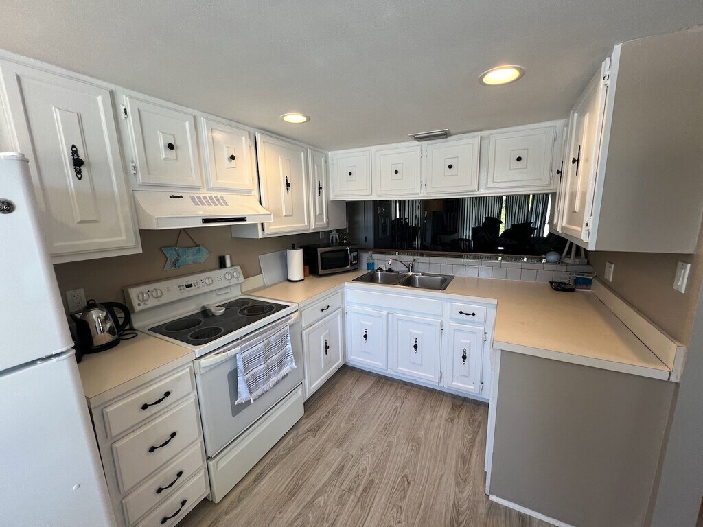 Discover Harbour Village—a fully furnished, turnkey rental in North Fort Myers near Paradise Marina and the Caloosahatchee River. This move-in-ready, 1007 sq ft, 2 bed, 2 bath end unit is on the second floor of a quiet 36-unit condominium complex. Seasonal owners have set up this gem for your convenience and won’t be using it for the next few years—just bring your toothbrush! The bright, open great room flows to a tiled screened lanai with lush landscaping views. Cook with ease in the updated kitchen featuring white cabinetry, a breakfast bar, in-kitchen laundry, and a pantry. The spacious primary suite offers two closets, serene views of the heated pool and cabana, and a refreshed bath with a tub/shower combo. The second bedroom is ideal for guests or a home office, adjacent to the second full bath. New Luxury Vinyl Plank flooring enhances the main living areas and bedrooms. This unit includes a covered carport (space #4), an adjacent storage unit, and ample guest parking. Enjoy the tropical community island with palm trees, a tranquil pond, a picnic table, and a vine-covered bridge entrance perfect for exploring or fishing. A peaceful oasis just minutes from shopping, dining, and Downtown Fort Myers. Available for $1,400 per month. Call today to schedule your showing!