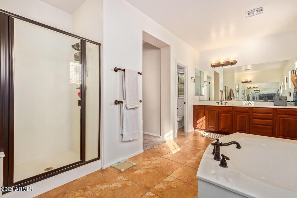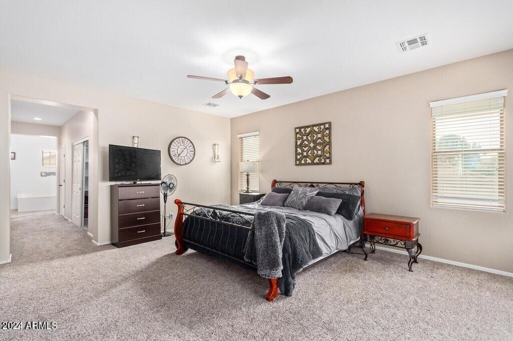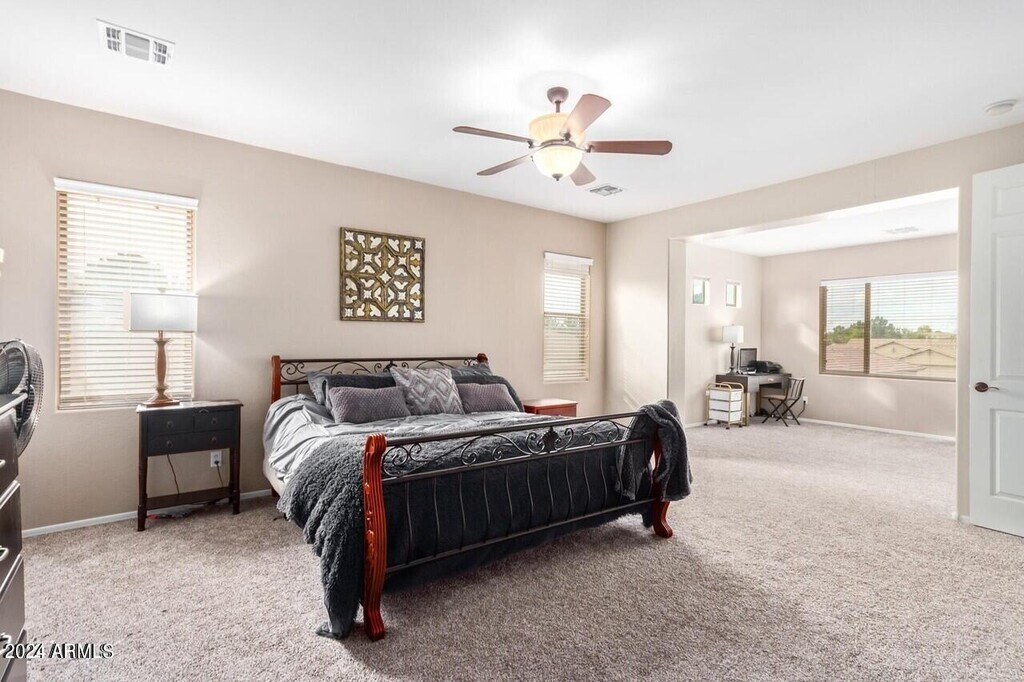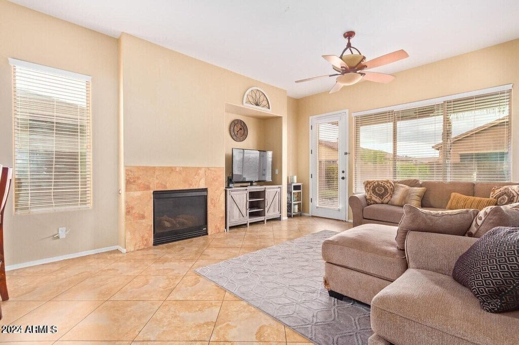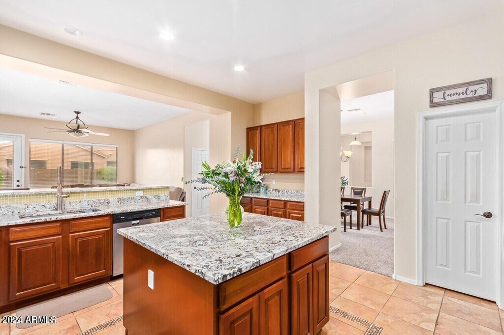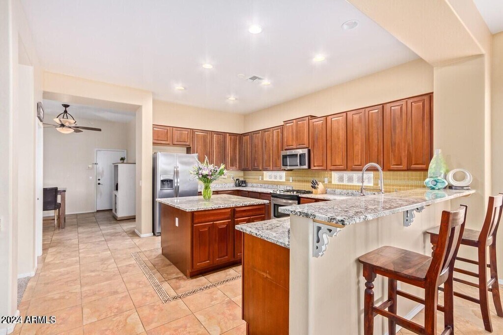 WELCOME HOME! This large cul-de-sac family home is located in the highly desirable South Chandler,A+ rated school district. It features four bedrooms ( could be converted to a downstairs fifth or a casita) and two and a half bathrooms. 3705 sq. ft. of comfortable living space,which boasts a formal living room with vaulted ceilings,formal dining,spacious kitchen with granite countertops,tiled backsplash,and stainless steel appliances. There are plenty of cabinets,a kitchen island,breakfast room and a breakfast bar off of the family room with gas fireplace. The OVERSIZED primary bedroom has a sitting room,two walk in closets,and ensuite with full bath including a soaking tub,step in shower,and separate sinks. The backyard is perfect for family fun and entertaining with a covered patio,grass,fruit trees,and a fenced dog run,there is room for everyone! This home is steps away from the community park,it's a must see home close to Veterans Oasis park,dining,shopping,golf,Intel and more.
