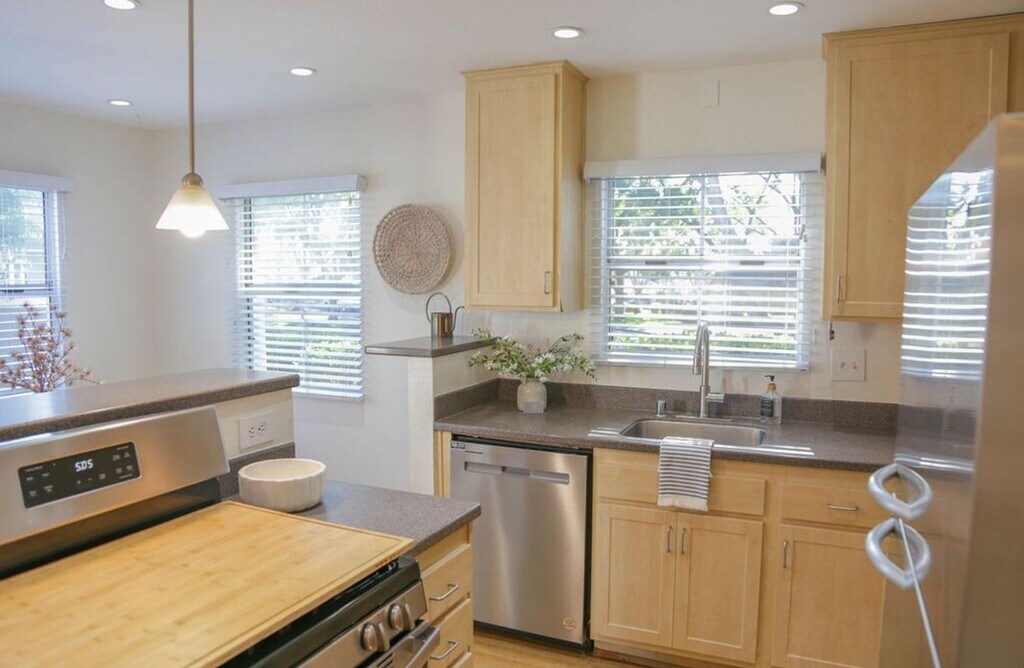Beautiful modern townhome on a quiet, tree-lined street in the desirable Hope School District. This inviting residence features a bright living room with recessed lighting, a dedicated dining area, and a remodeled kitchen with stainless steel appliances. The main level offers a primary bedroom and bath, while the upper level includes two spacious bedrooms with new carpet and a renovated bathroom. Enjoy indoor laundry, covered parking, and a private brick patio with garden space. Ideally located close to Upper State Street shops and restaurants, Samsung Clinic, Hope School, and Bishop Diego High School. Tenant pays all utilities except trash. NS, No Co-signers, One small pet under 15 lbs may be considered by owner, Avail Now.