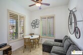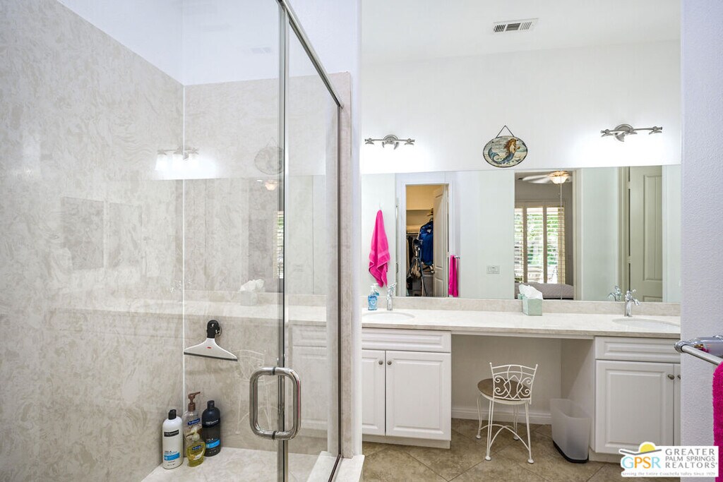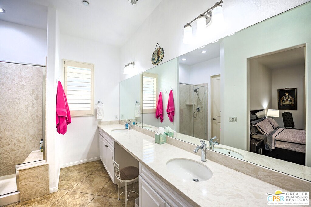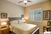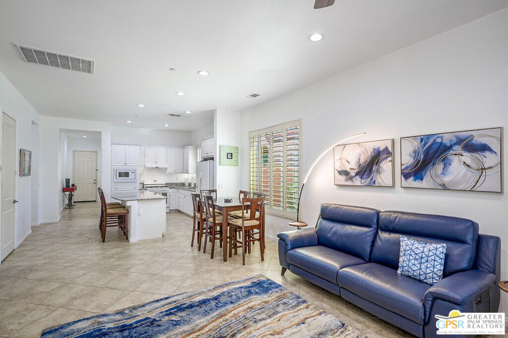 Fatima NordquistBeautifully Upgraded Hideaway Plan in Sun City Shadow Hills Room for Pool! Built in 2012, this highly upgraded Phase 3 Hideaway plan offers 1,512 sq. ft. of open-concept living in one of the newest areas of Sun City Shadow Hills, Indio's premier 55+ active adult community. Featuring 2 bedrooms, 2 baths, plus a versatile den that can easily be a third bedroom or home office, this home checks all the boxes. The modern front elevation is enhanced by easy-care desert landscaping and a large, pool-sized lot. Inside, 24x24 diagonal-set modern tile flows through the main living spaces, complemented by plantation shutters throughout. The chef's kitchen boasts crisp white cabinetry, granite countertops, a stool-height prep island, dining area, and great room perfect for entertaining. The spacious primary suite includes patio access through a glass slider and features a barn-style door leading to the luxurious bath with dual vanities, walk-in shower, and a generous walk-in closet. Guest bedroom and primary closets have upgraded diagonal patterned carpet. The extended garage includes an insulated overhead door, anchored storage cabinets, and side door access to a walkway connecting to the driveway. Outdoor living shines here with an extended concrete patio, Alumawood cover, fire pit, tranquil water feature, raised garden beds, and gorgeous sunset skies.Enjoy resort-style living in Sun City Shadow Hills, with championship golf, pickleball, tennis, fitness center, pools, clubhouses, and endless activities. This move-in ready home offers comfort, upgrades, and space to design your dream desert lifestyle.